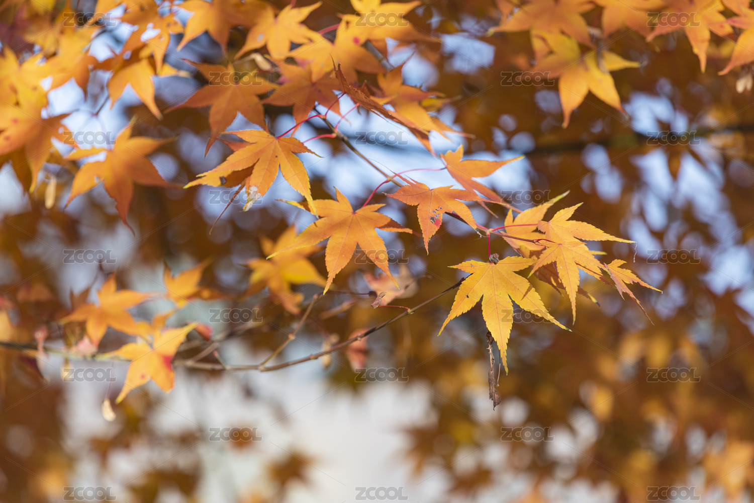 深秋的黄色枫叶和红色枫叶