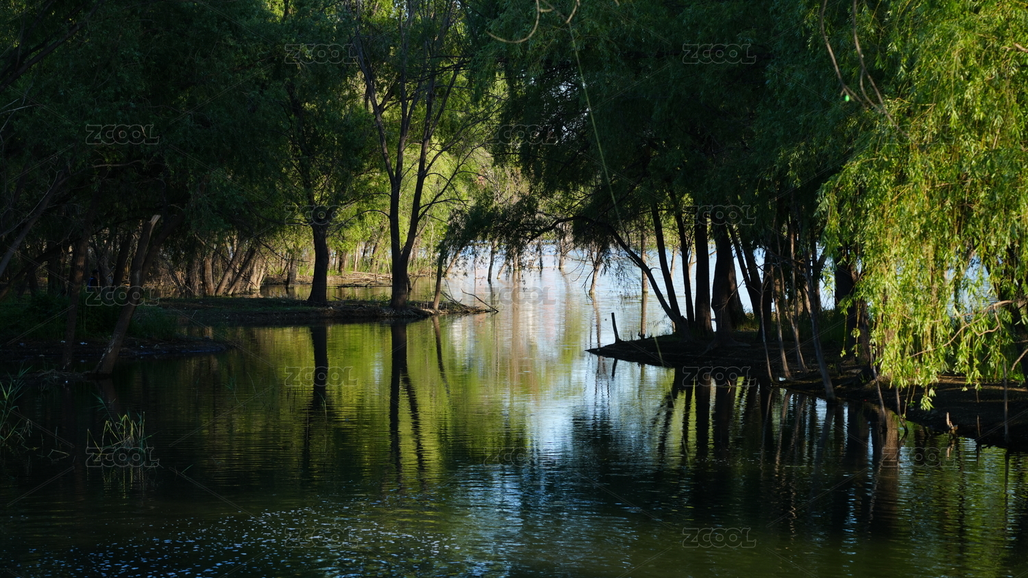 绿色成荫的小河流