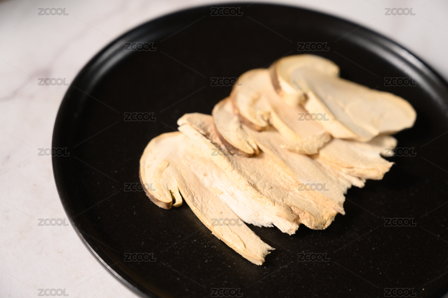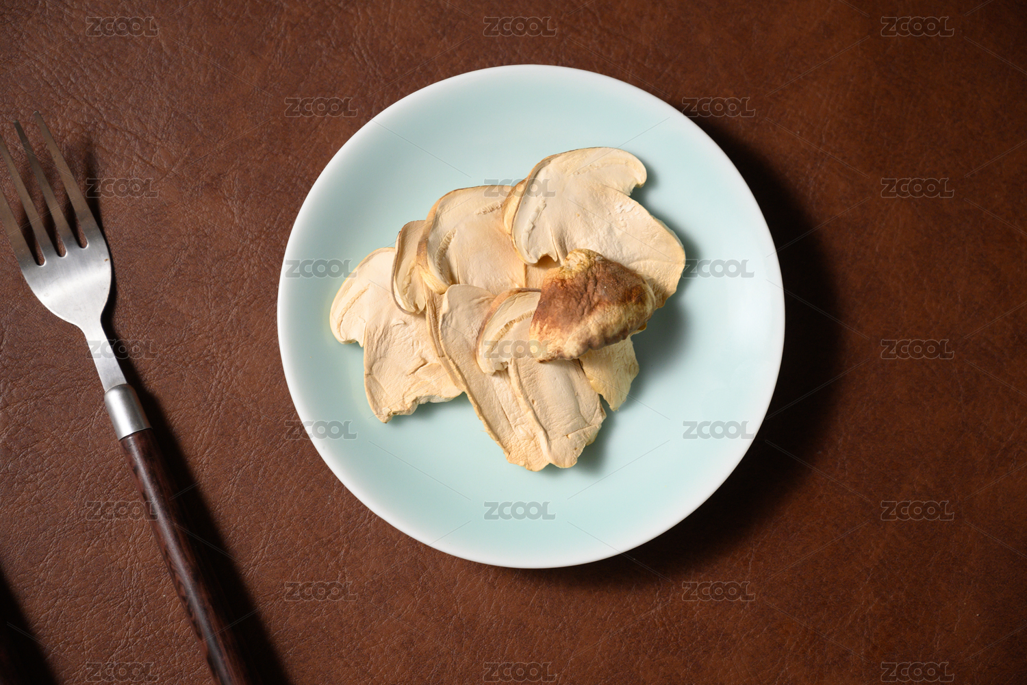 桌面上的盘子里的美味可口的干松茸