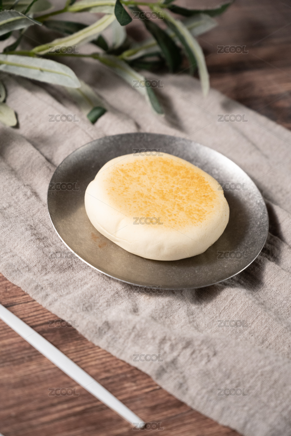 桌面上的盘子里的美味可口的豆乳餐包