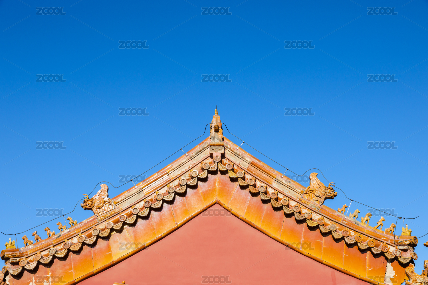 北京故宫建筑屋檐瓦兽光影局部细节