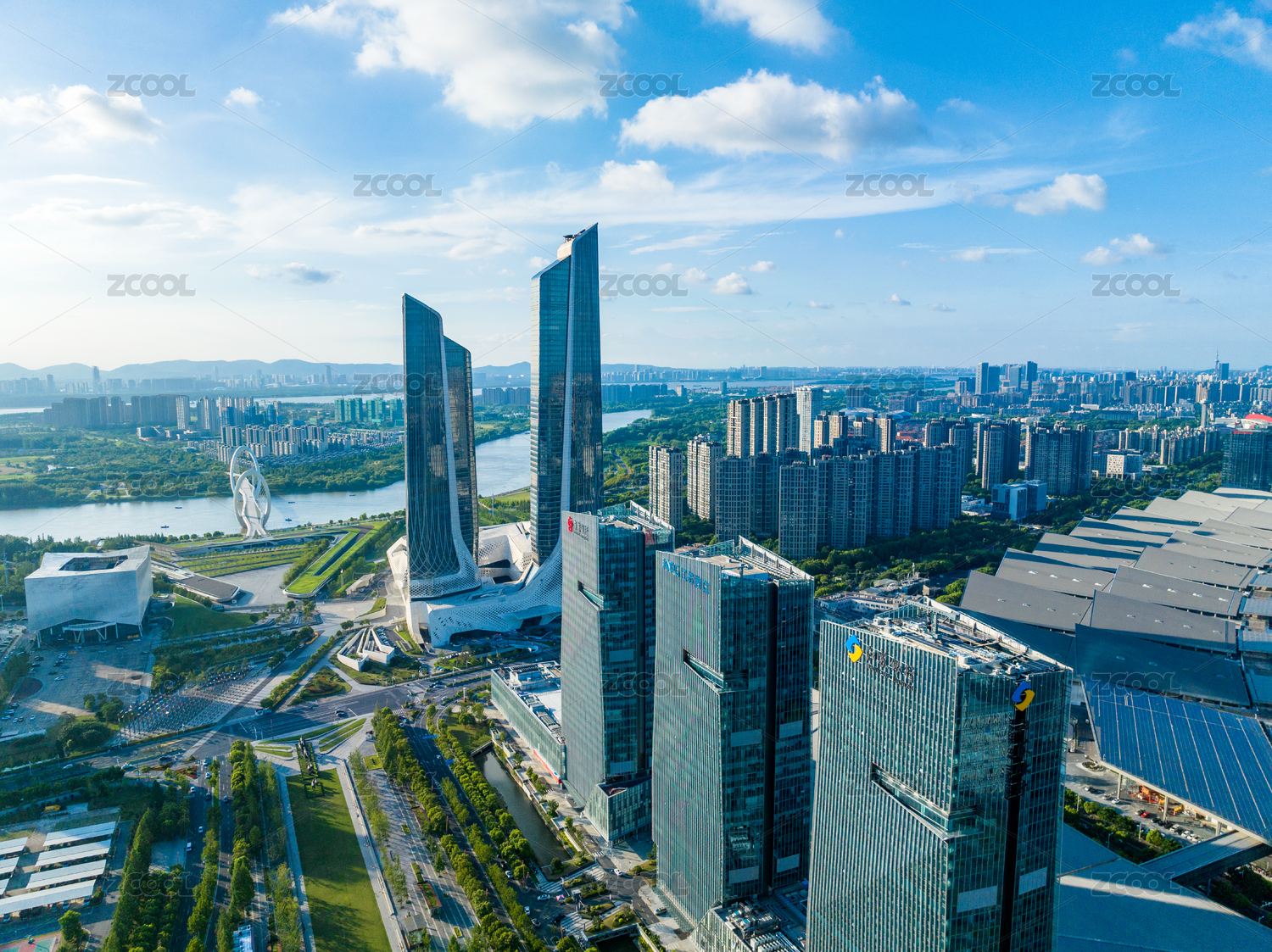 航拍中国贵州省贵阳市观山湖商务区与会展中心
