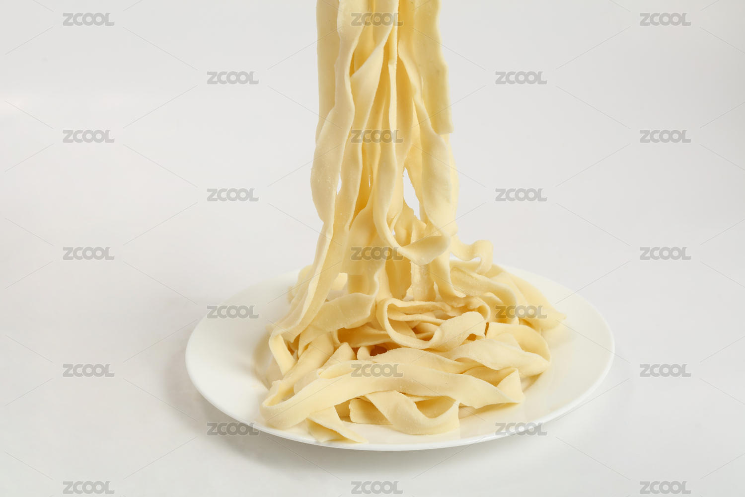 木质桌面上摆放着一盘子中餐美食手擀面条