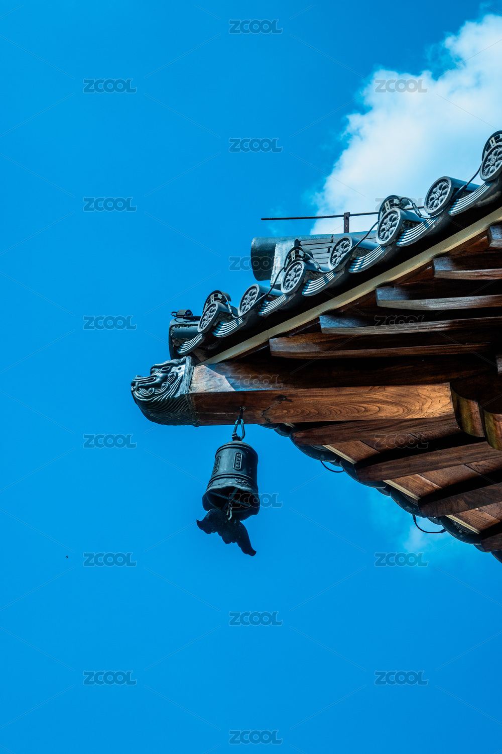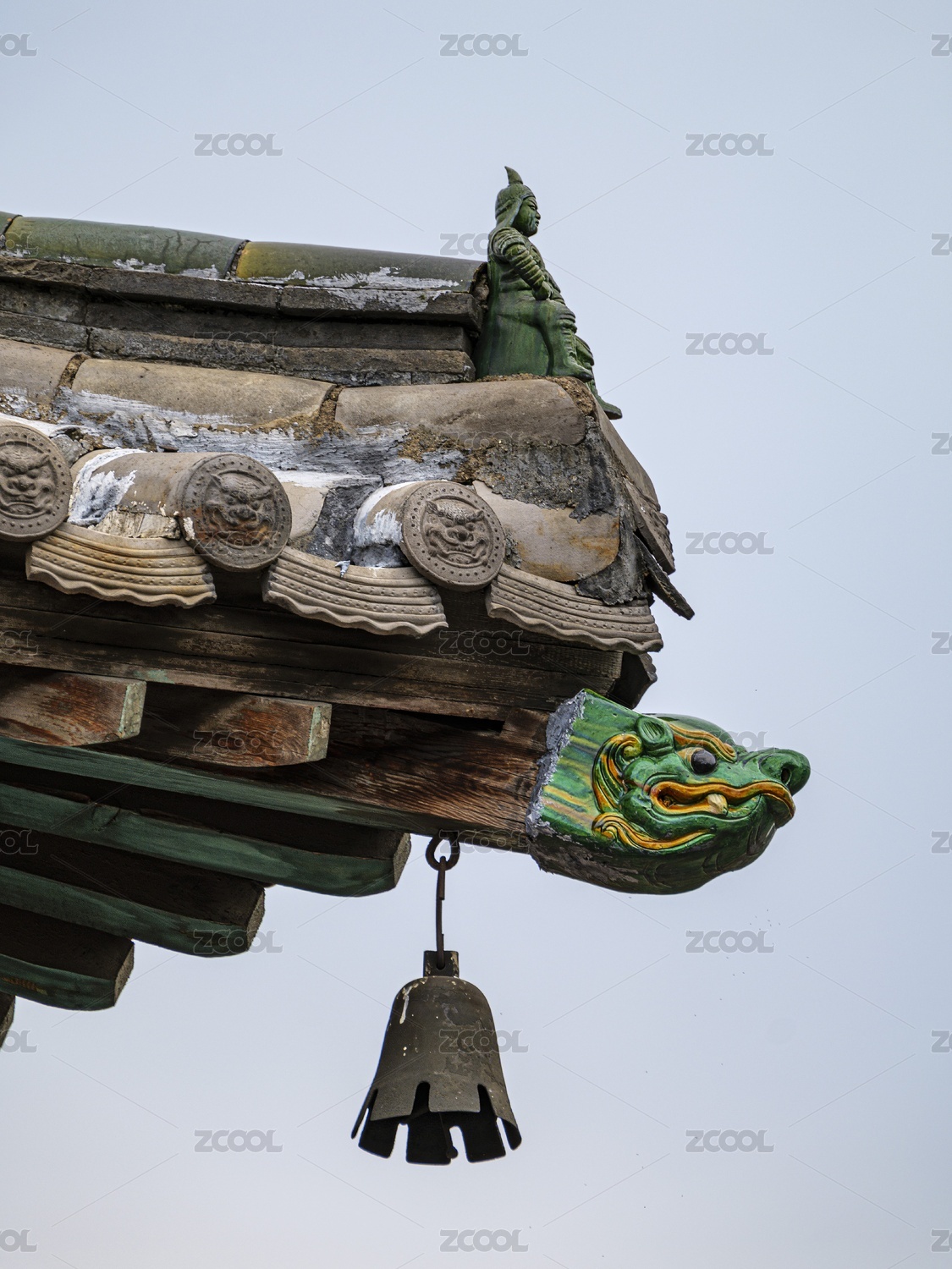 中国传统寺庙古建筑屋顶飞檐造型特写