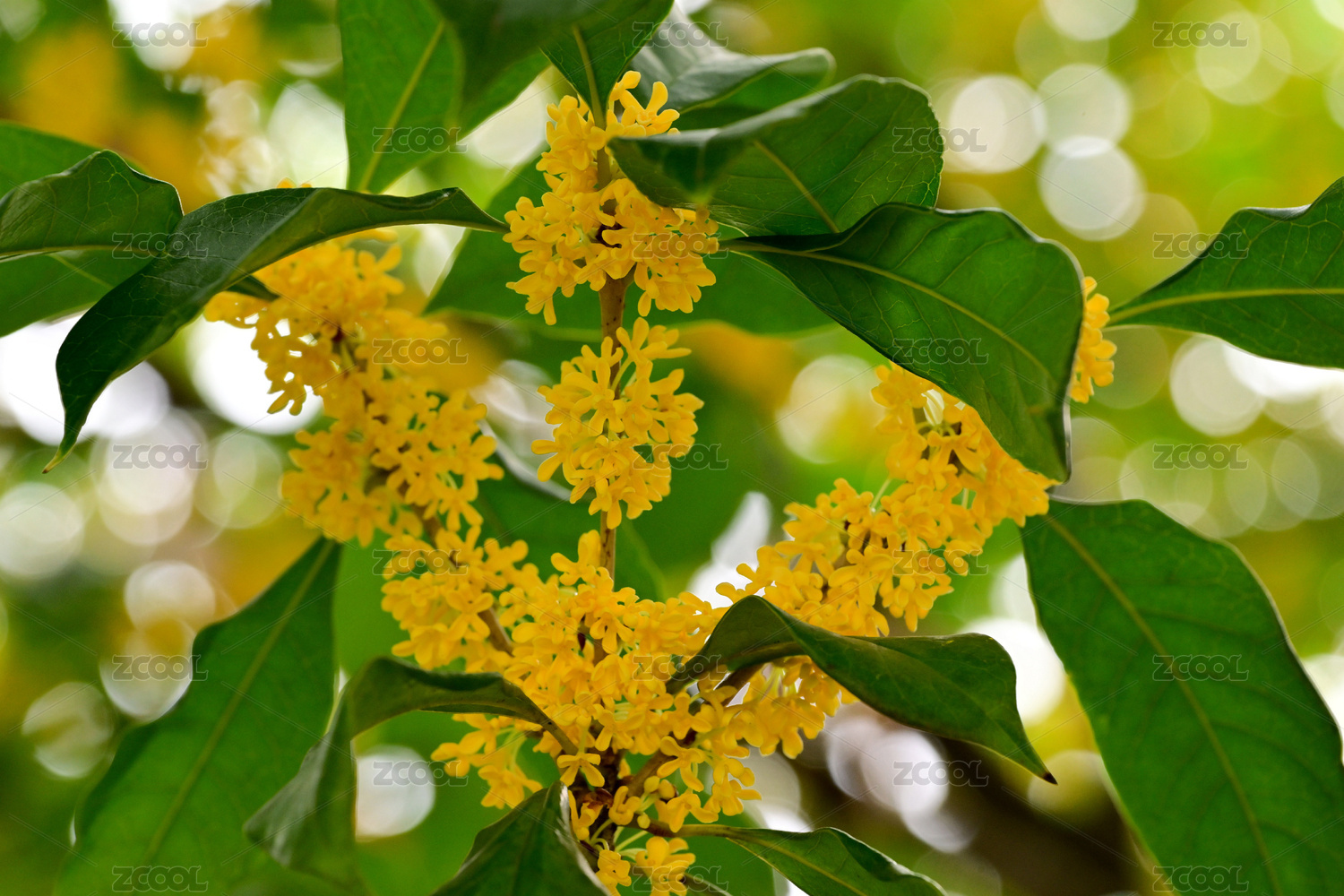 深秋的桂树上一簇簇黄色的桂花金桂