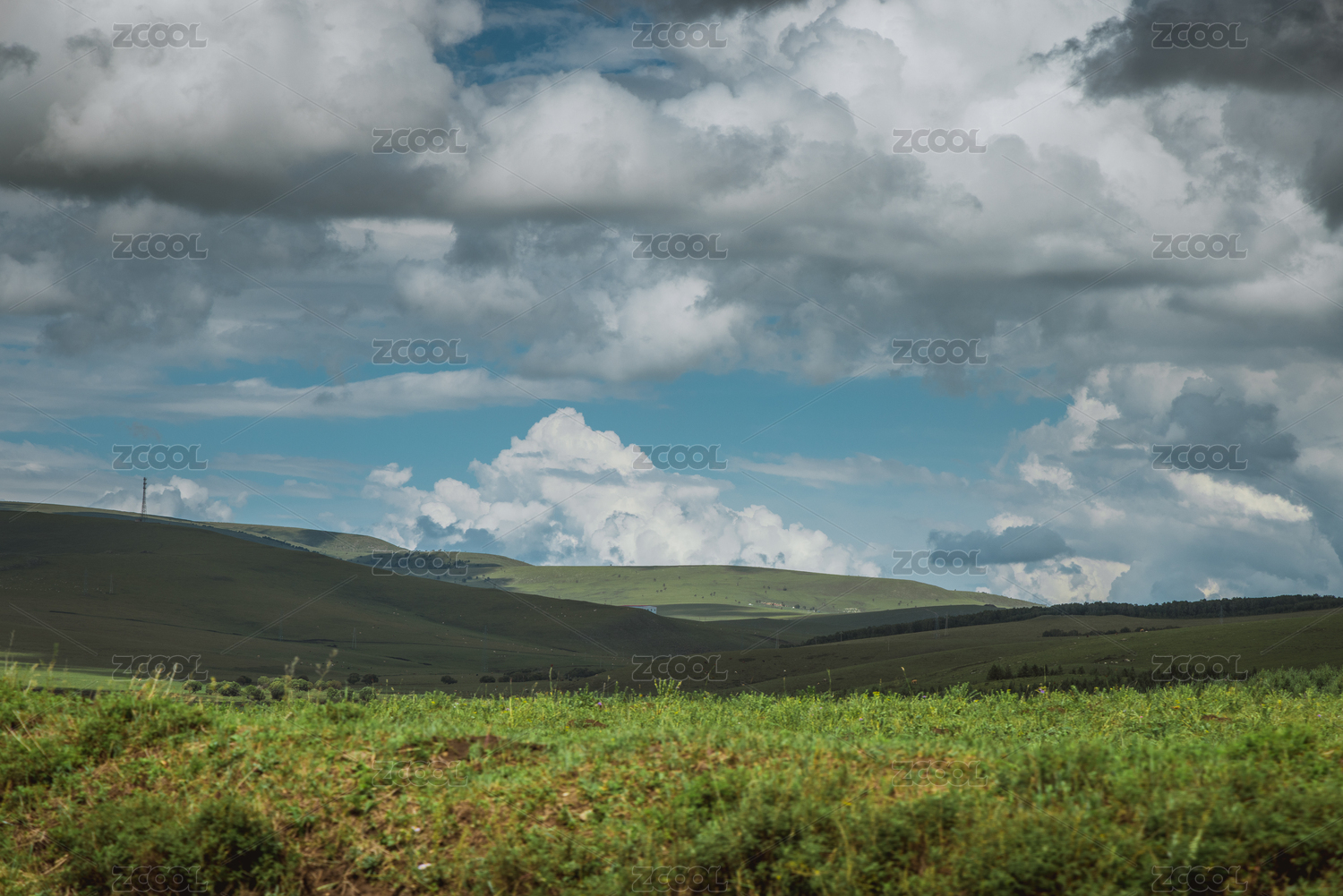 中国四川甘孜藏族自治州蓝天白云下草原风光