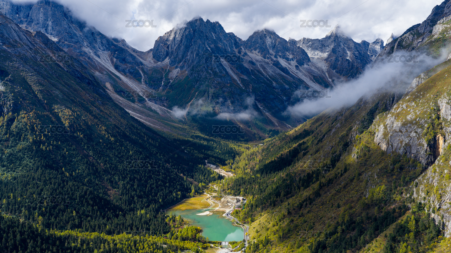 四川阿坝州毕棚沟磐羊湖秋景航拍