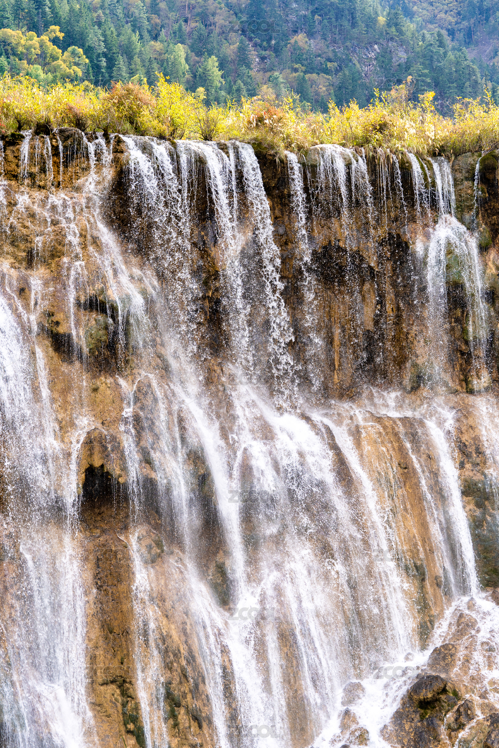 中国四川省阿坝州九寨沟景区气势磅礴的瀑布