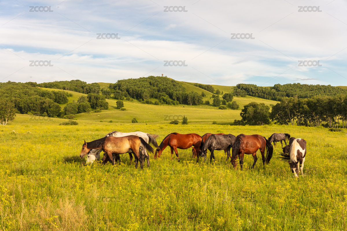 内蒙古赤峰乌兰布统草原景区蓝天白马群骏马