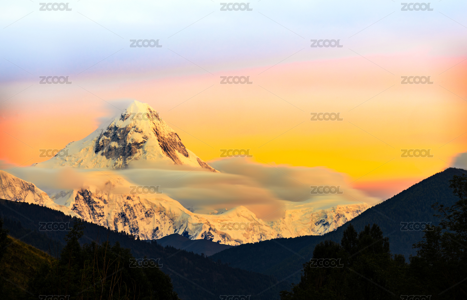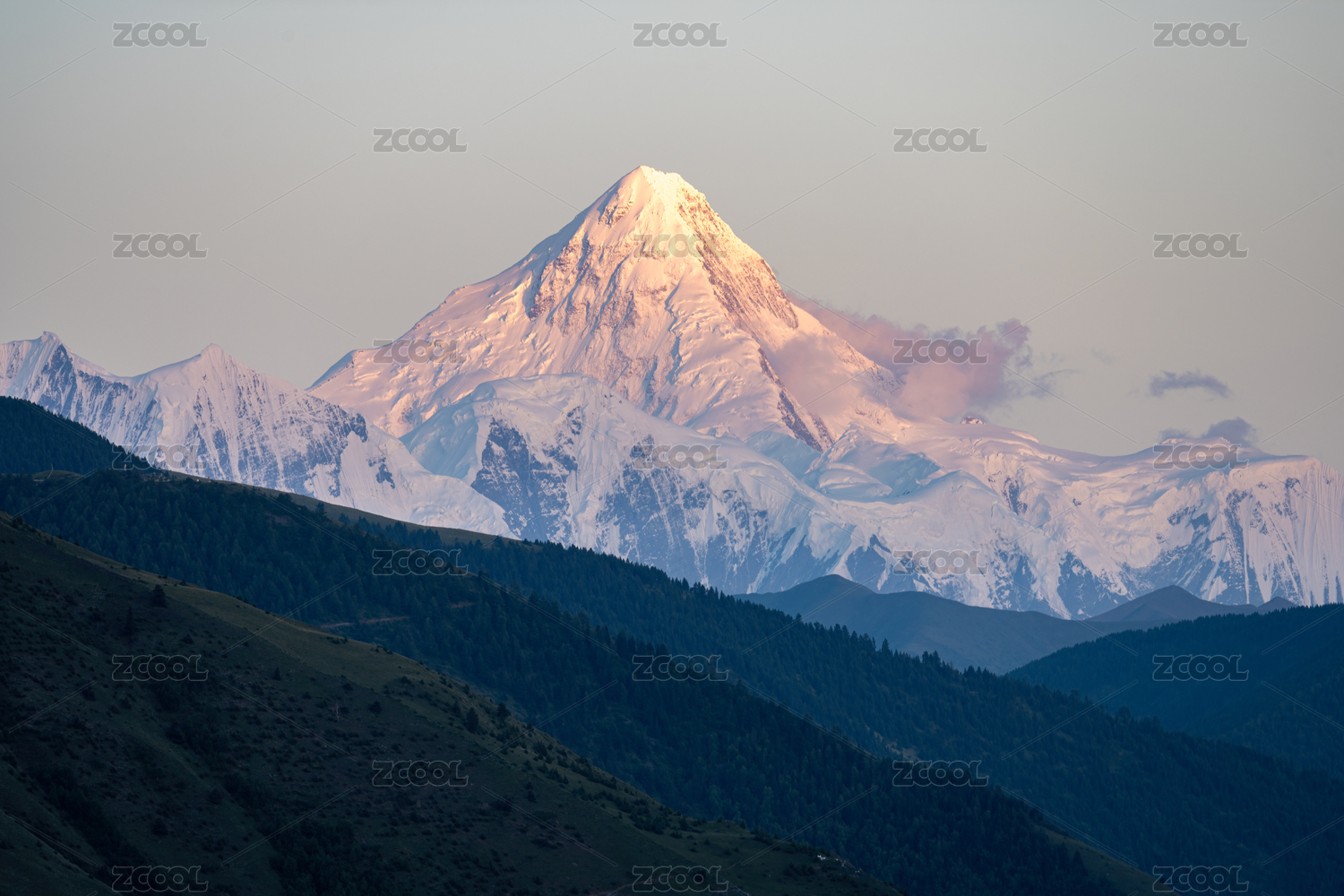 中国四川甘孜藏族自治州贡嘎山日照金山风光