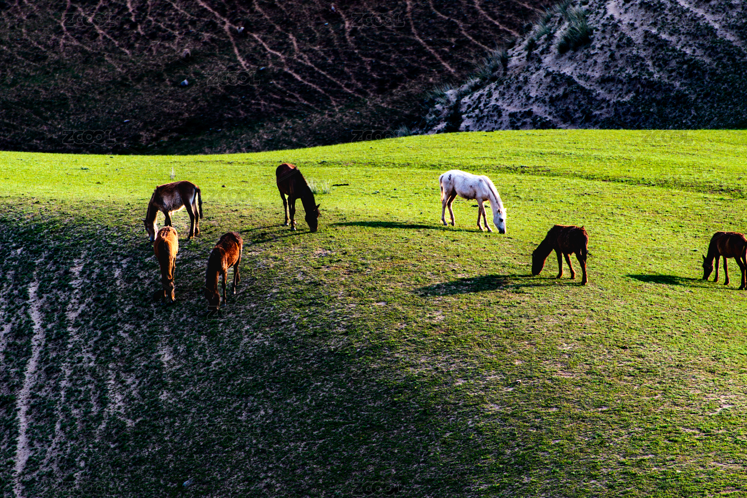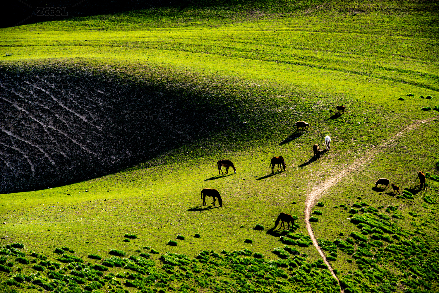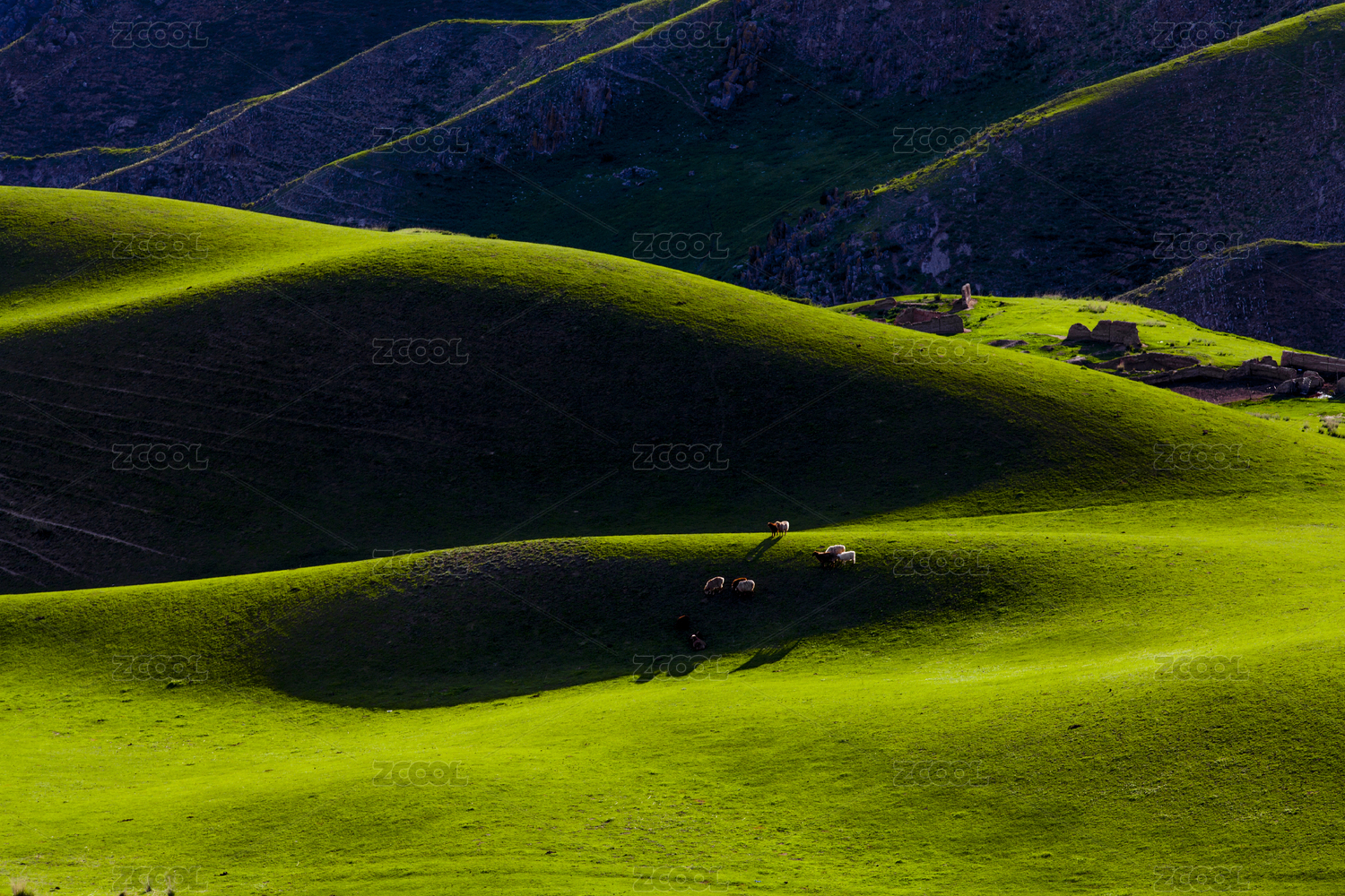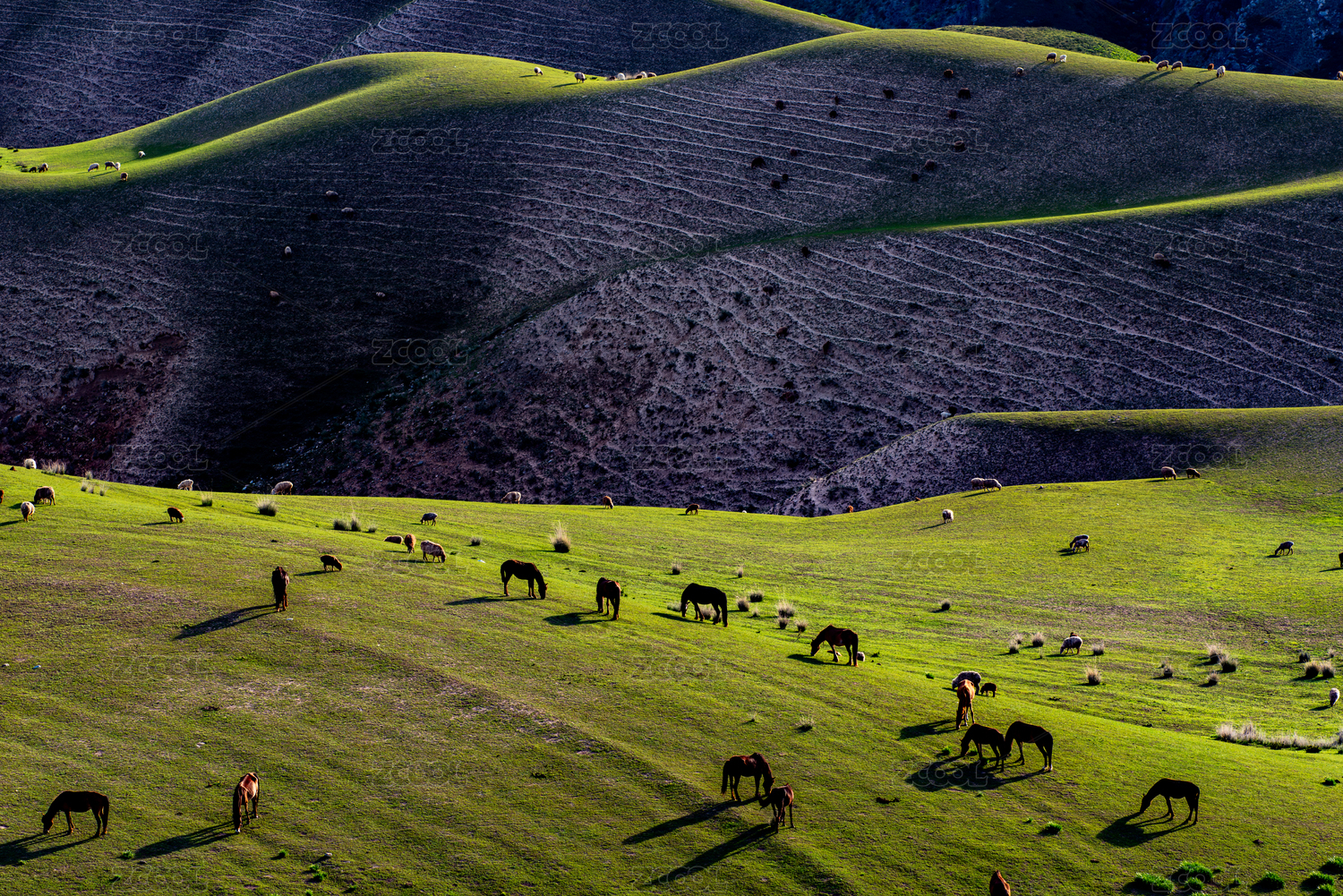 中国,新疆,伊犁,草原,山丘,野花,牧场,光影,大自然