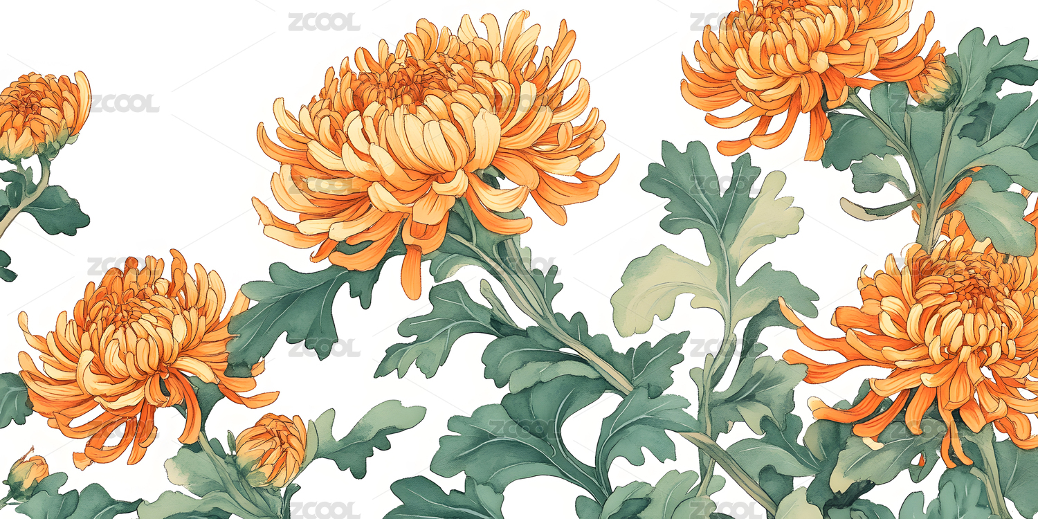 橙菊,蓝叶,花卉,插画,花朵,叶子,清新,自然,植物,盛开