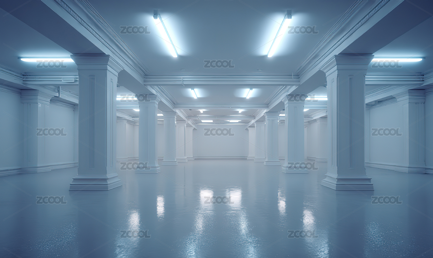 走廊,柱子,天花板,灯光,反射,空间,建筑,结构,直线,对称
