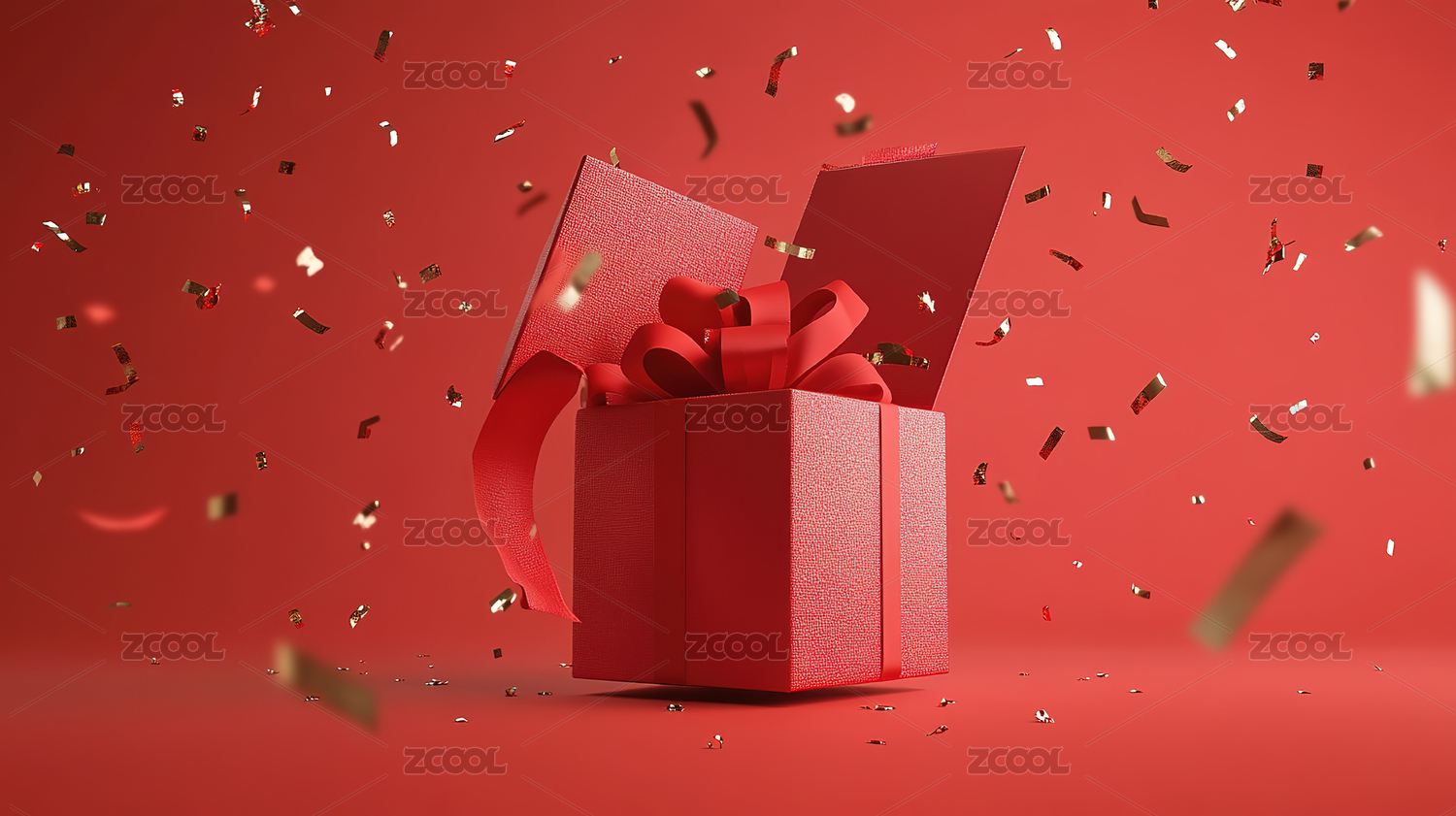 礼盒,促销,场景,打开,盒子,金色丝带,装饰,突出,折扣,信息