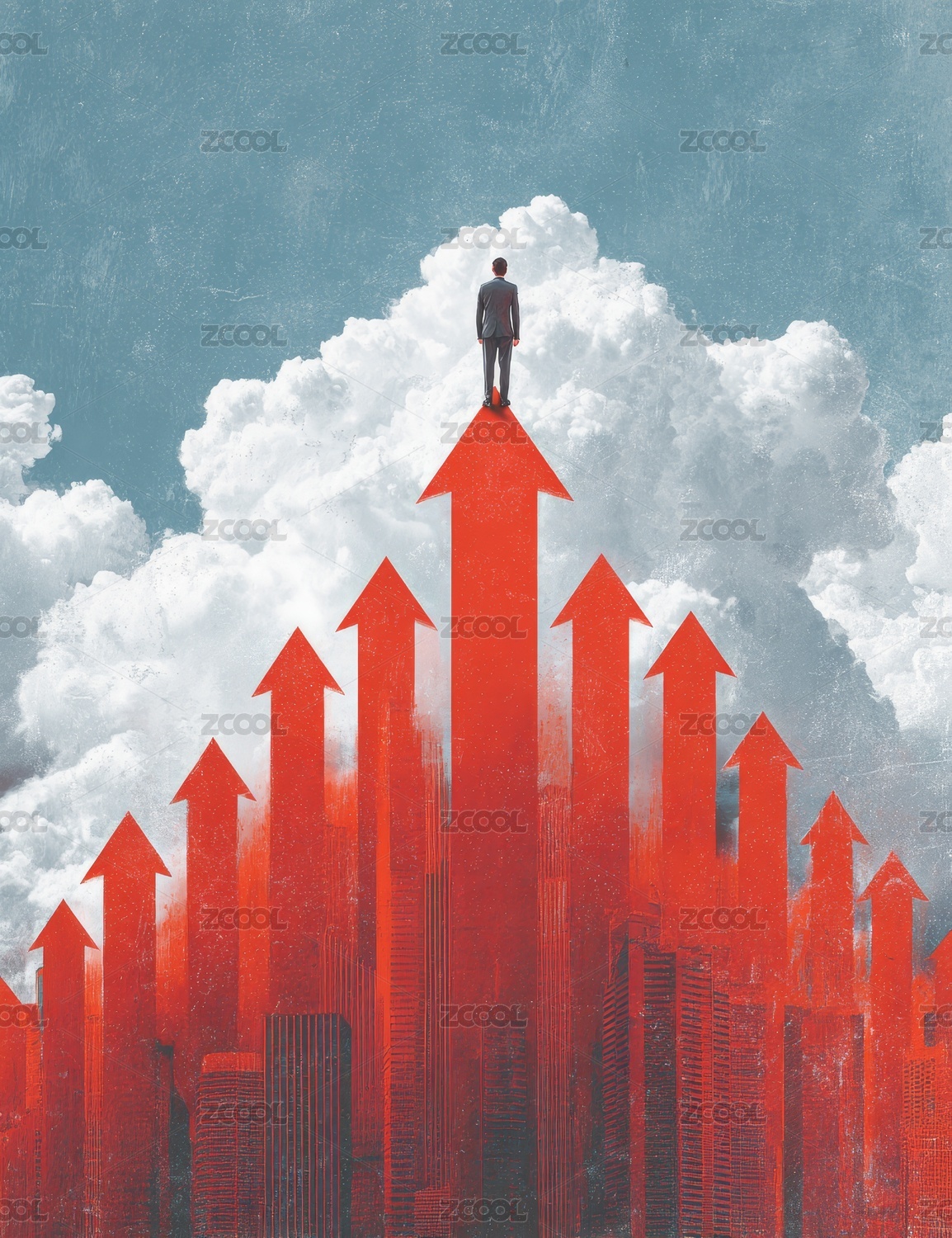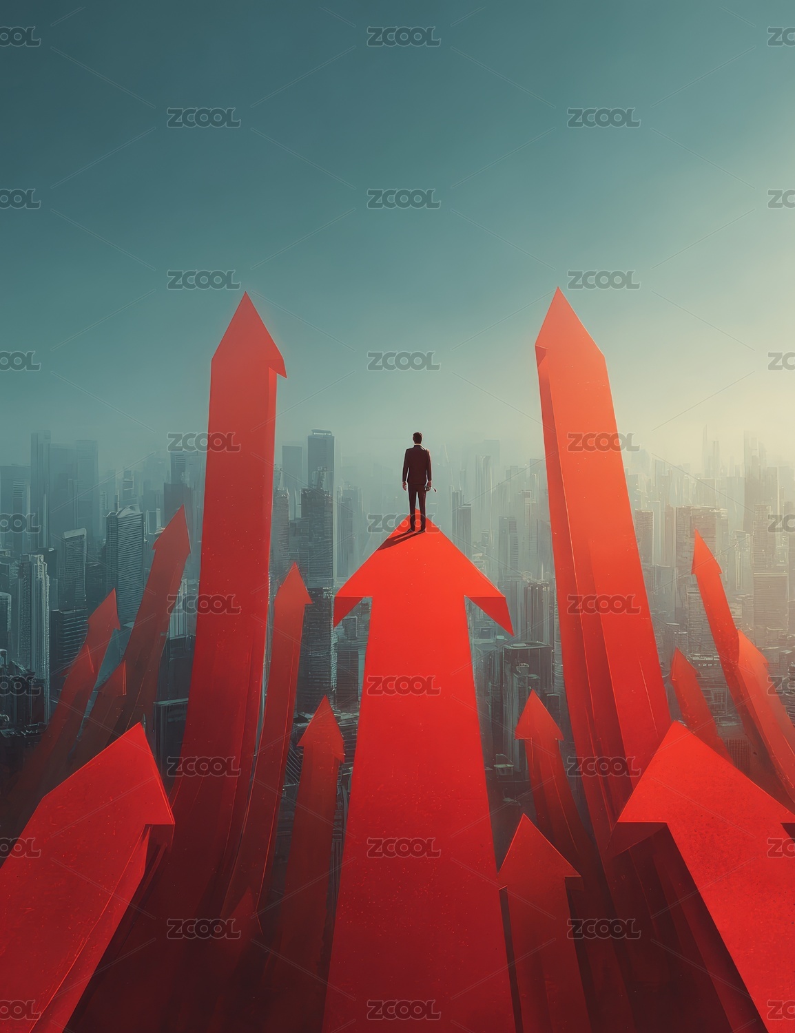 商人,站立,顶端,红色,柱状,图表,上升,趋势,成功,增长