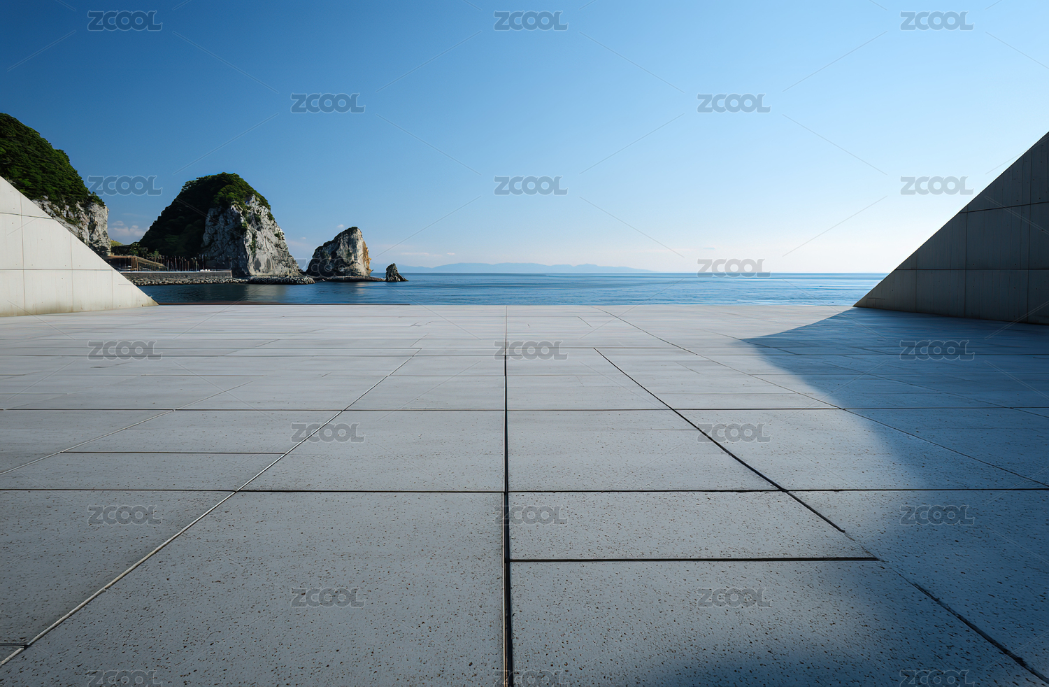海边现代广场与岩石景观