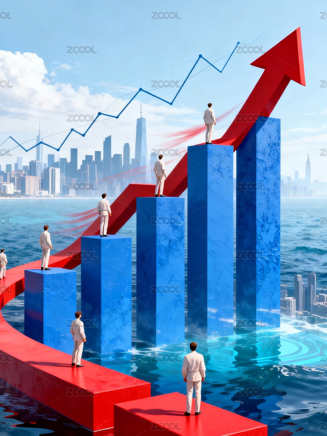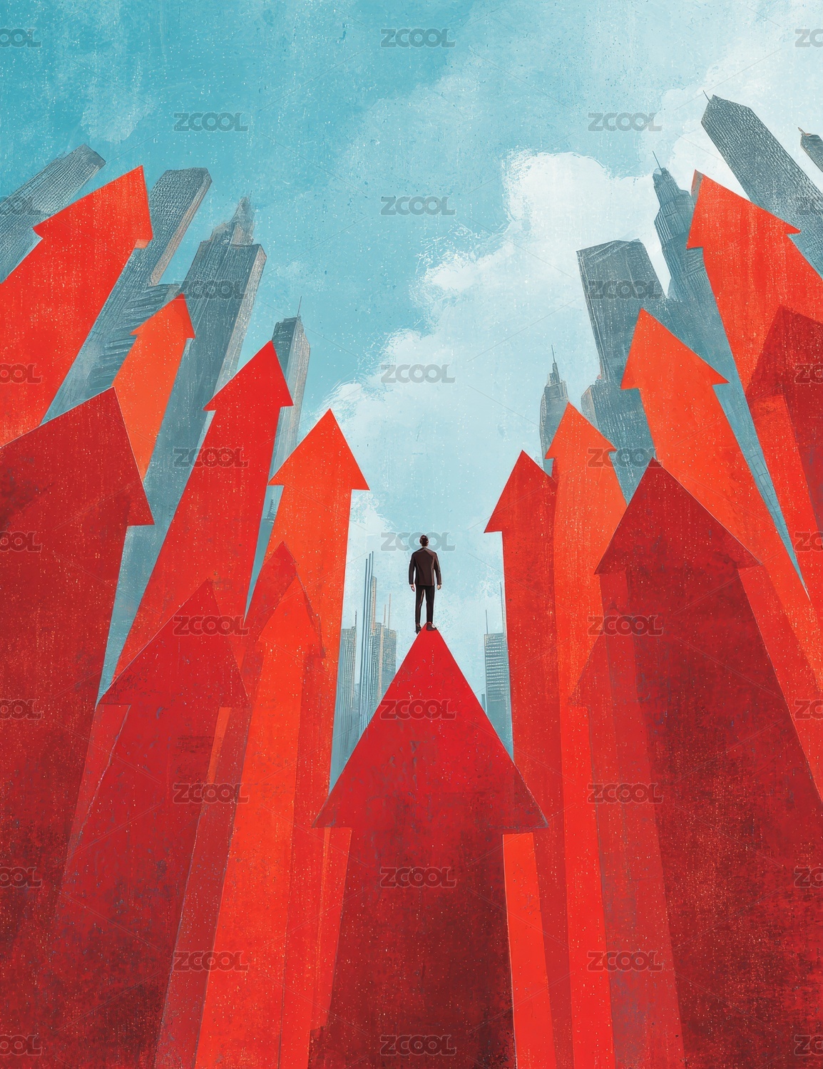 商人,站立,顶端,红色,柱状,图表,上升,趋势,成功,增长