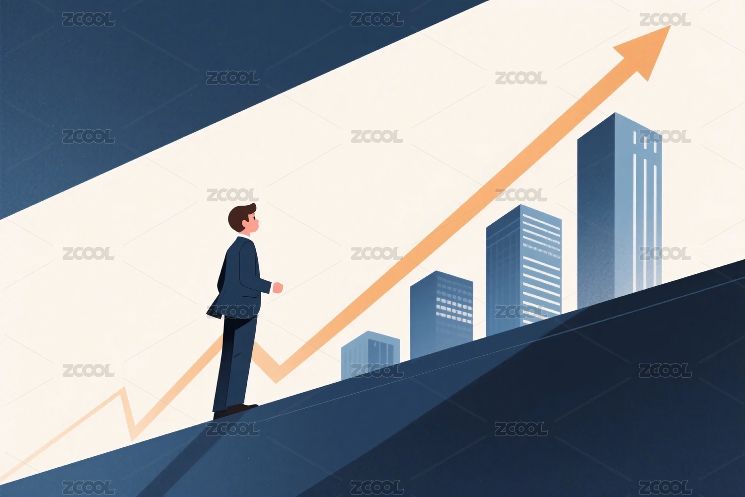 商务人士扶着梯子分析解析墙上的数据投资理财概念