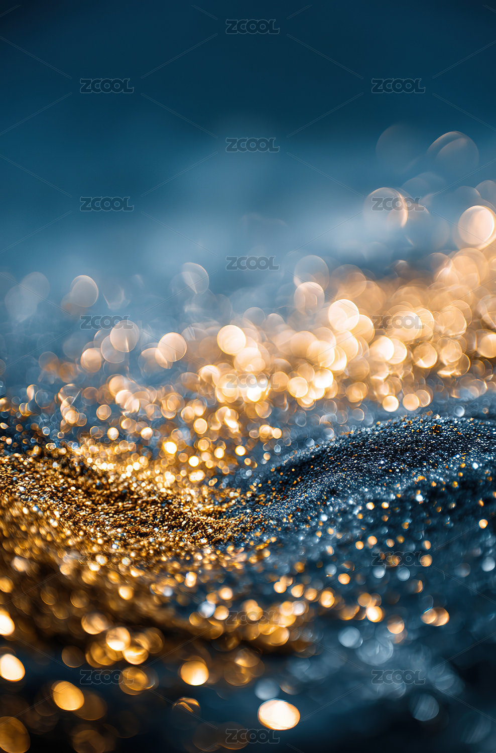 蓝色与金色的梦幻散焦背景
