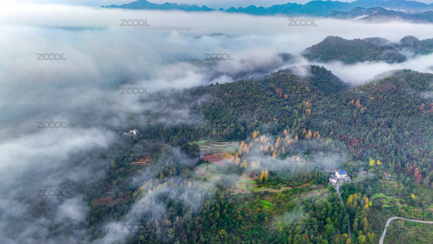 云霭缭绕,诗意乡村