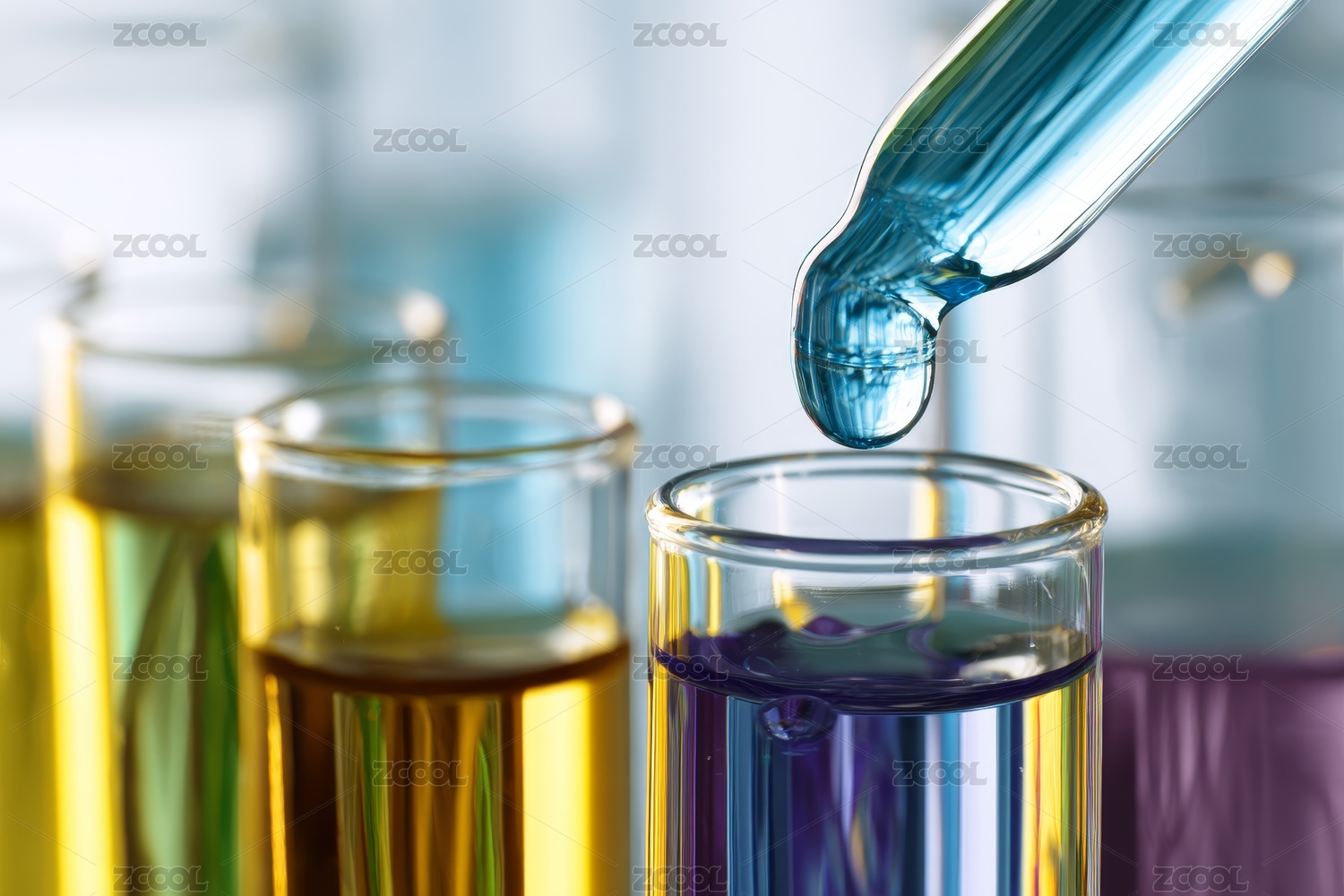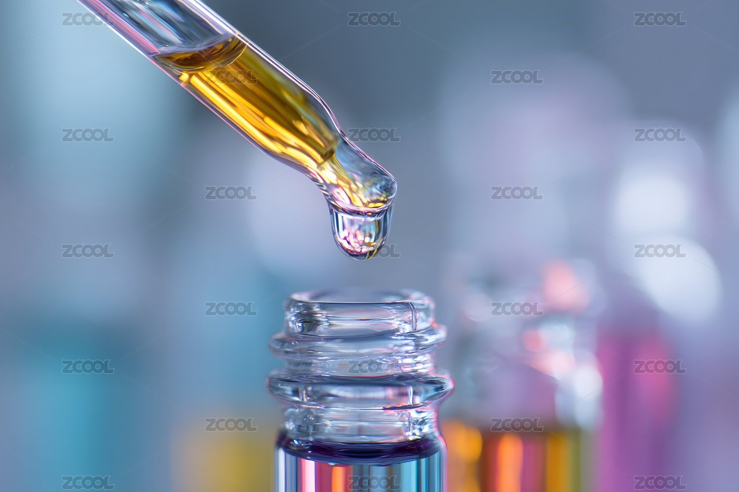多彩试剂瓶与滴液场景图