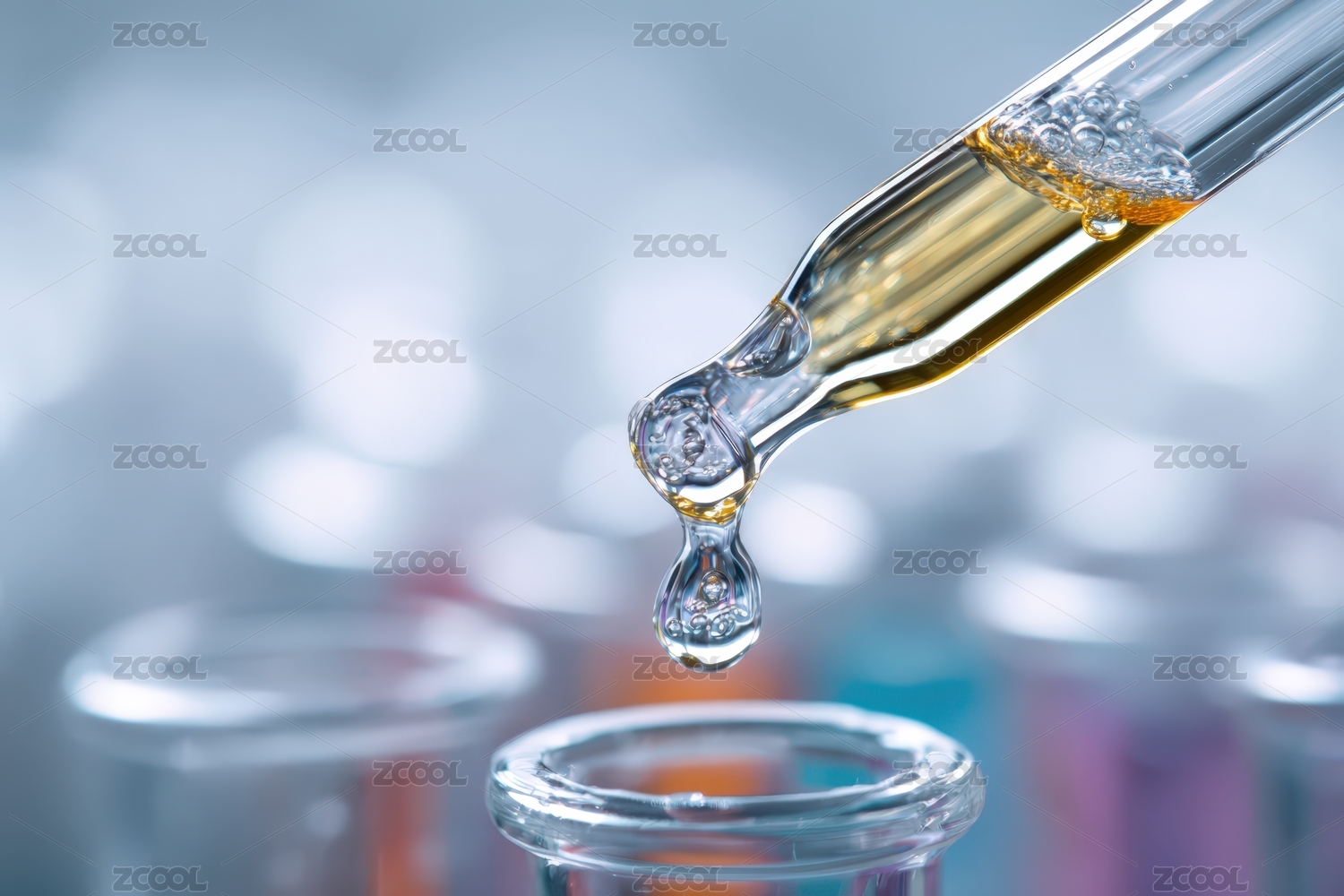 滴管注入透明容器中的橙色液体