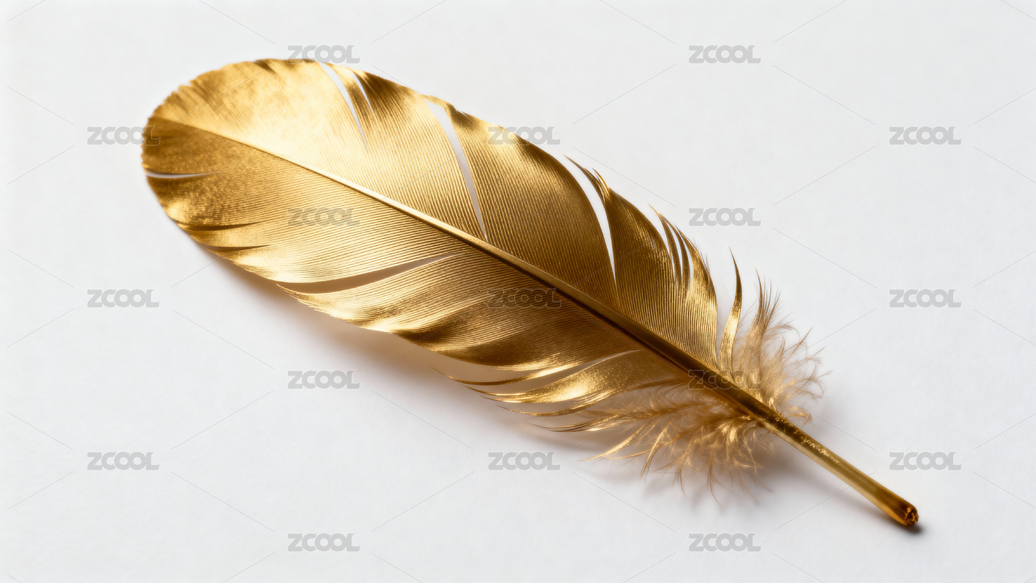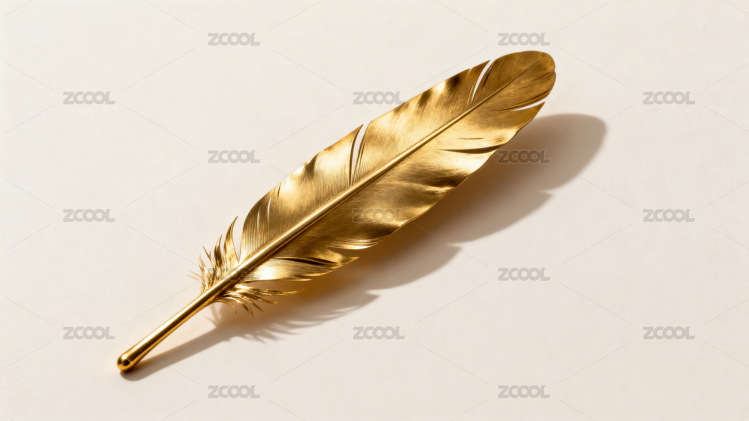 金色羽毛静置于浅色背景之上