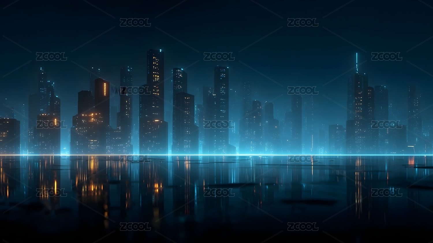 蓝色,科技,未来,发光,反射,空间,结构,对称,光影,现代