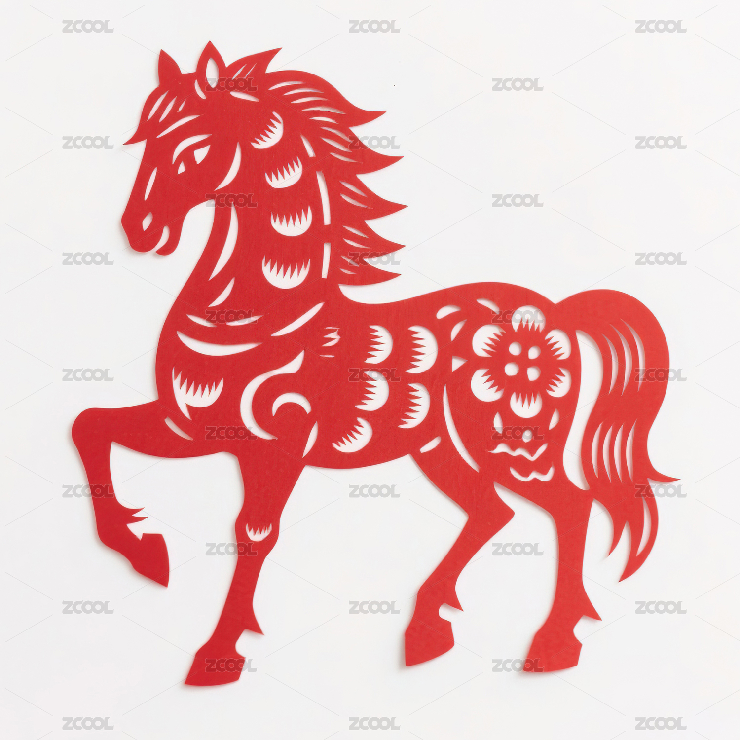 红色剪纸艺术马图案