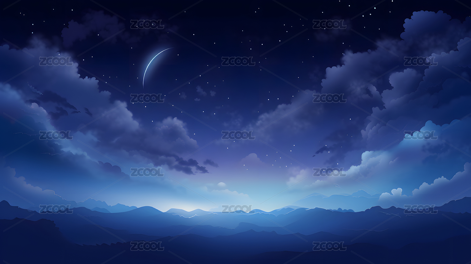 黑色,深蓝,山脉,云朵,神秘,宁静,夜空,自然,风景,壮丽