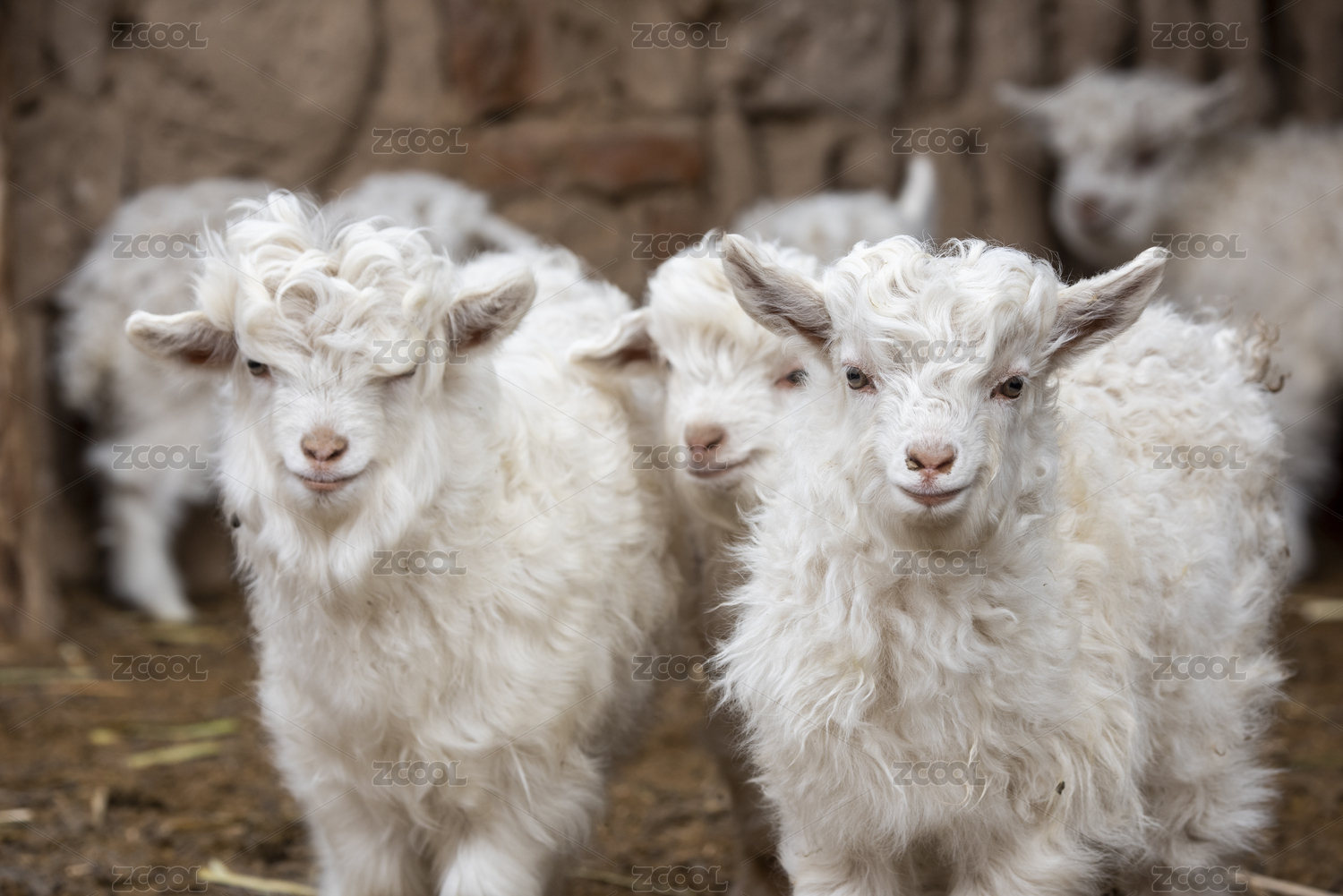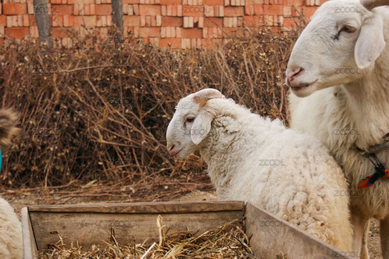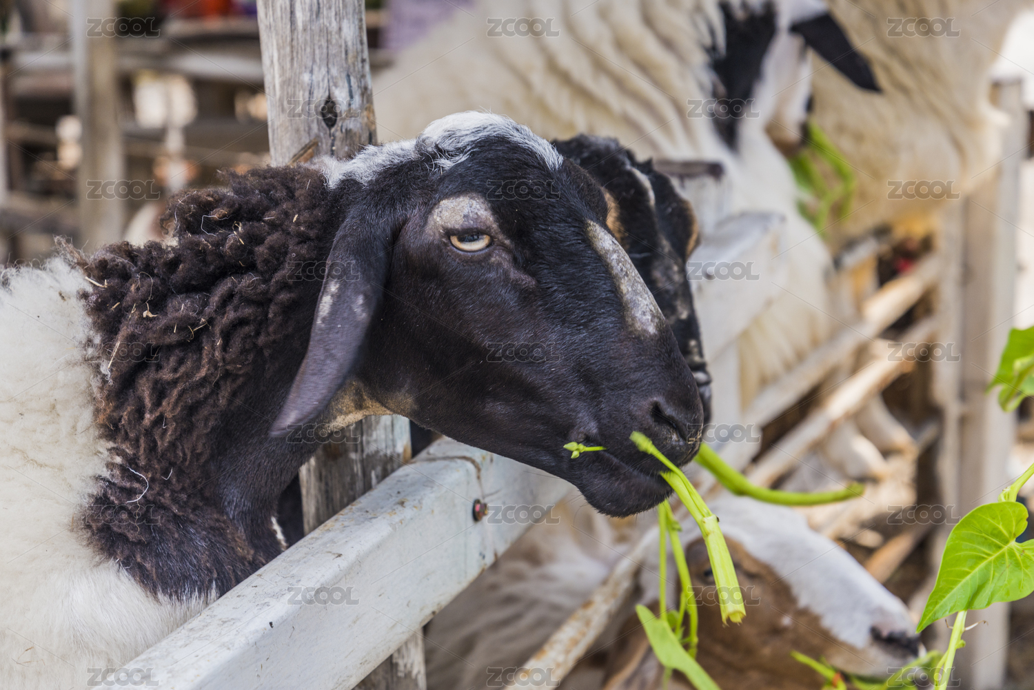 青海高原牧场里畜养着一保棕色的藏系线绵羊