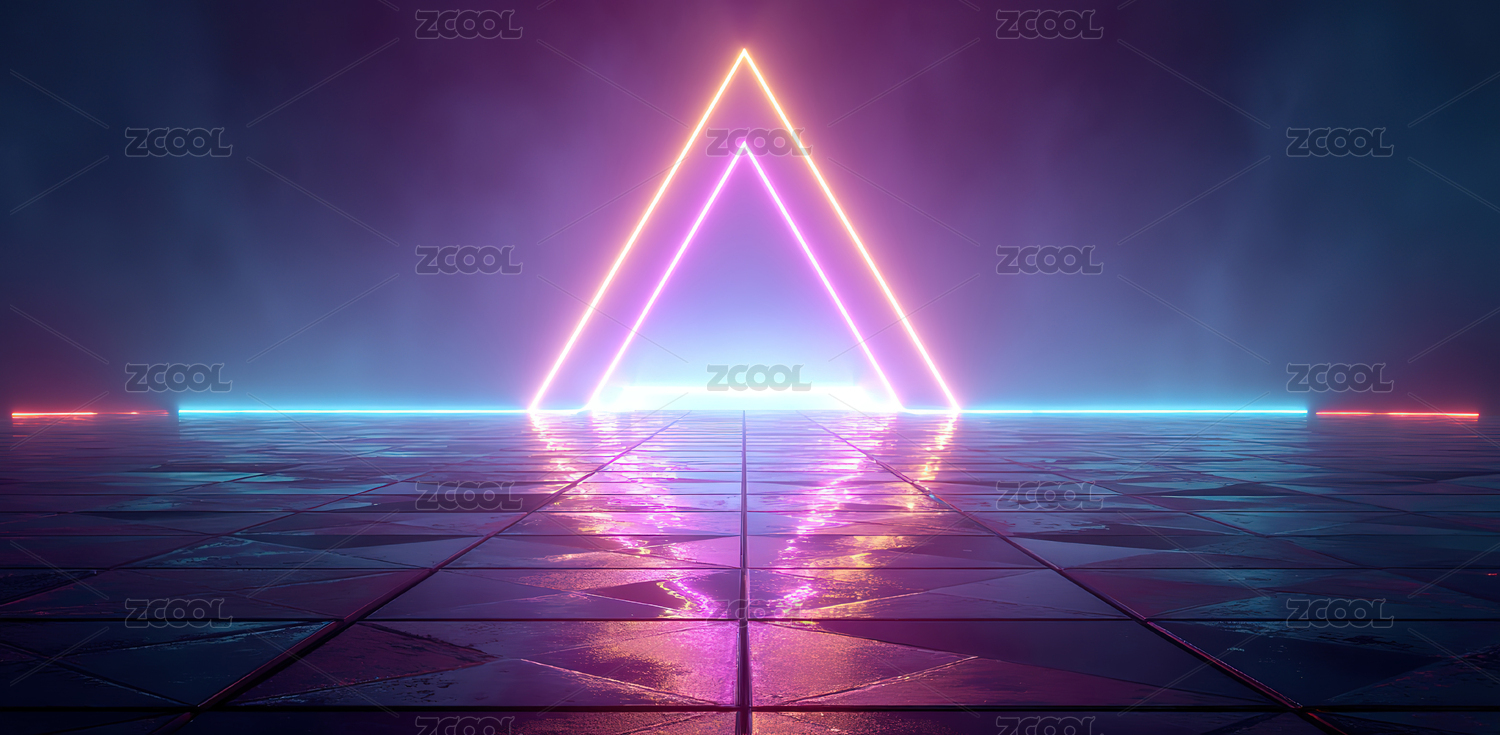 深色,对比,模糊,霓虹灯,三角形,红蓝,未来感,科技感,竖线,中央