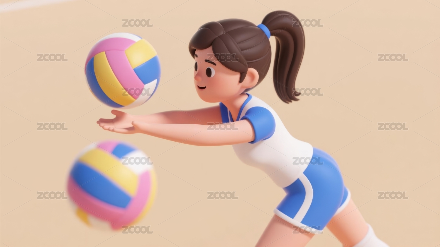 3D卡通女孩打排球