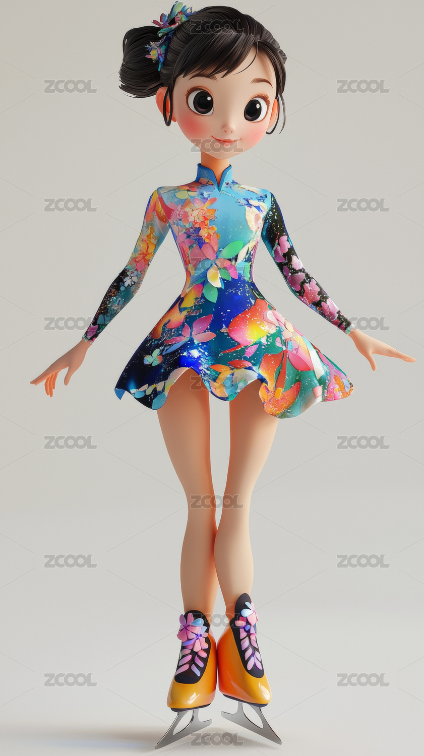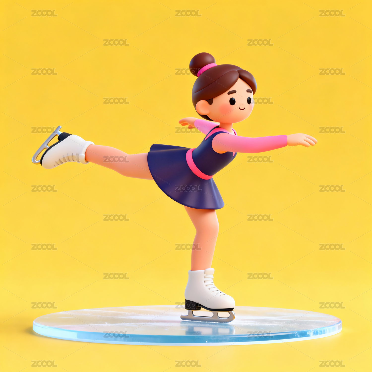 卡通,黄色,背景,女孩,表情,头发,笑容,动作,手臂,冰鞋
