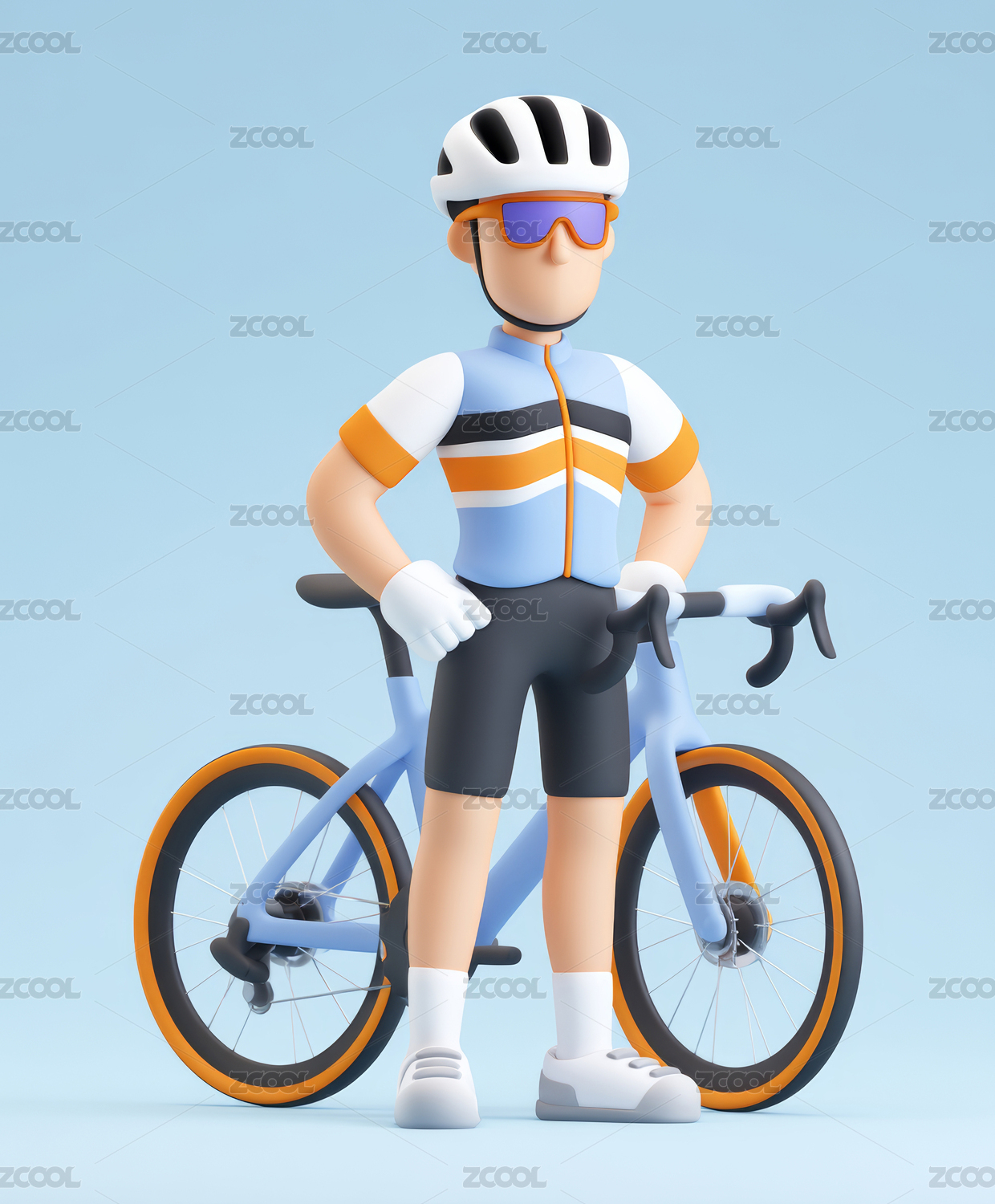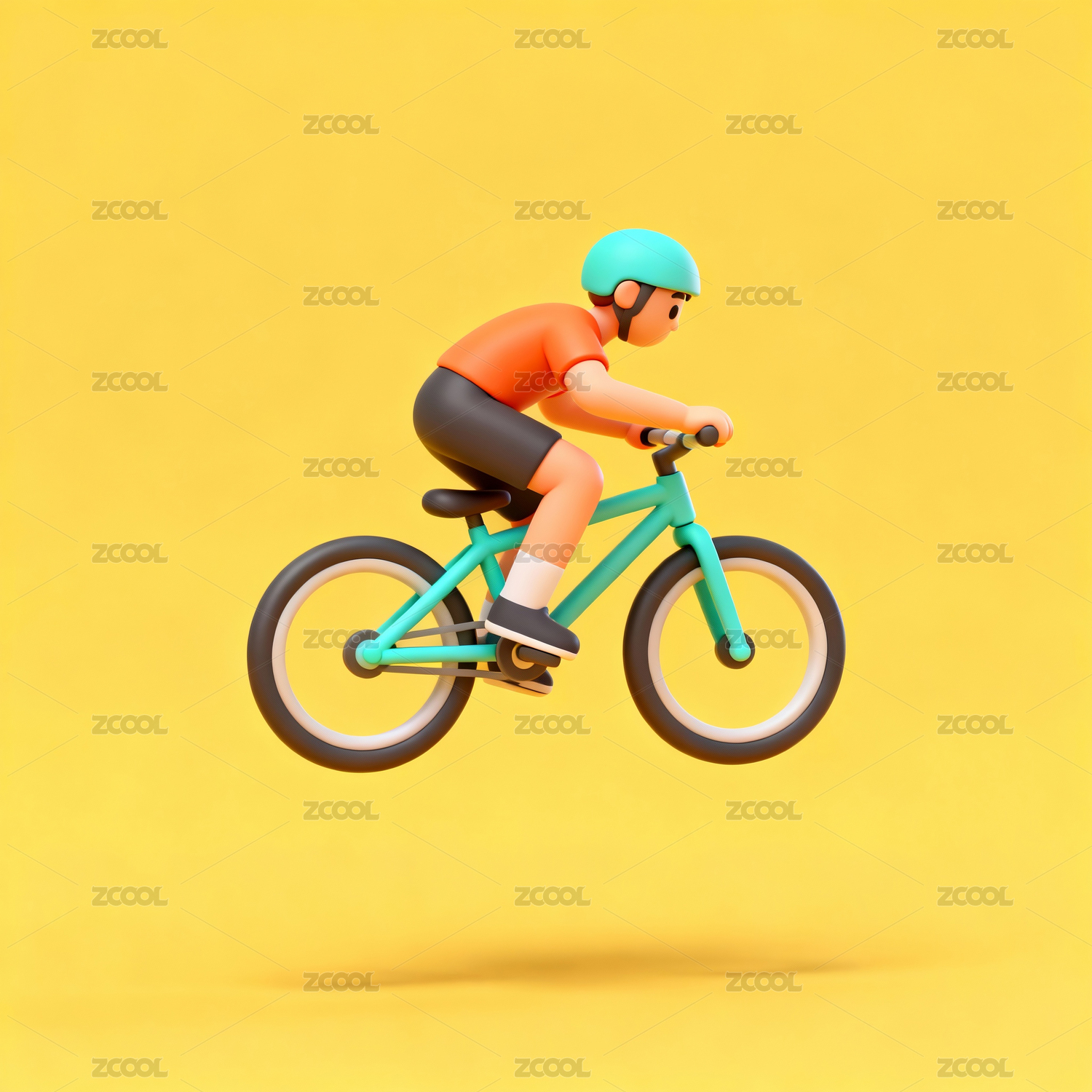 戴头盔骑自行车的女孩3D骑行戴头盔插画