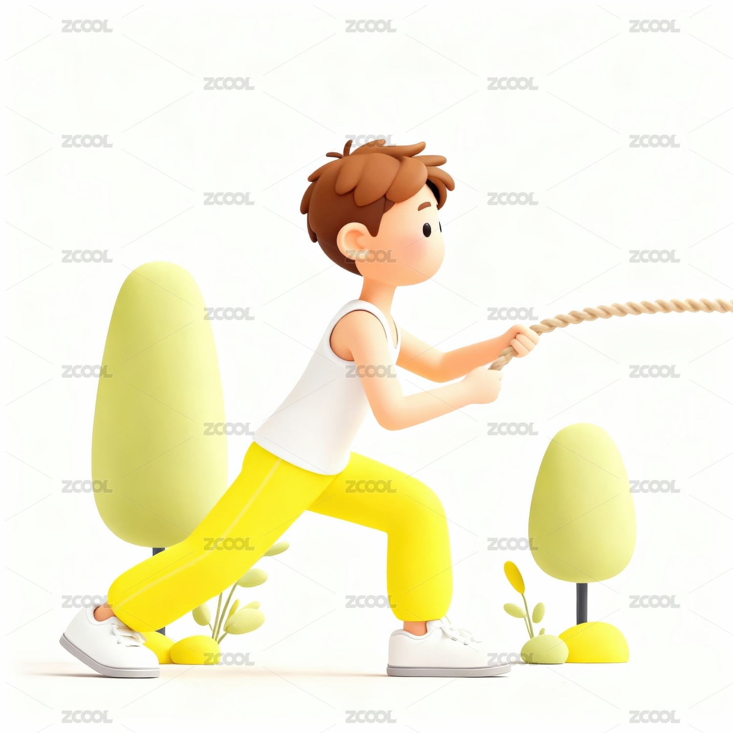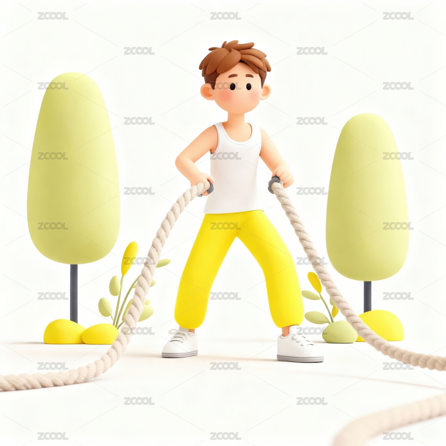 卡通男孩拉绳锻炼身体