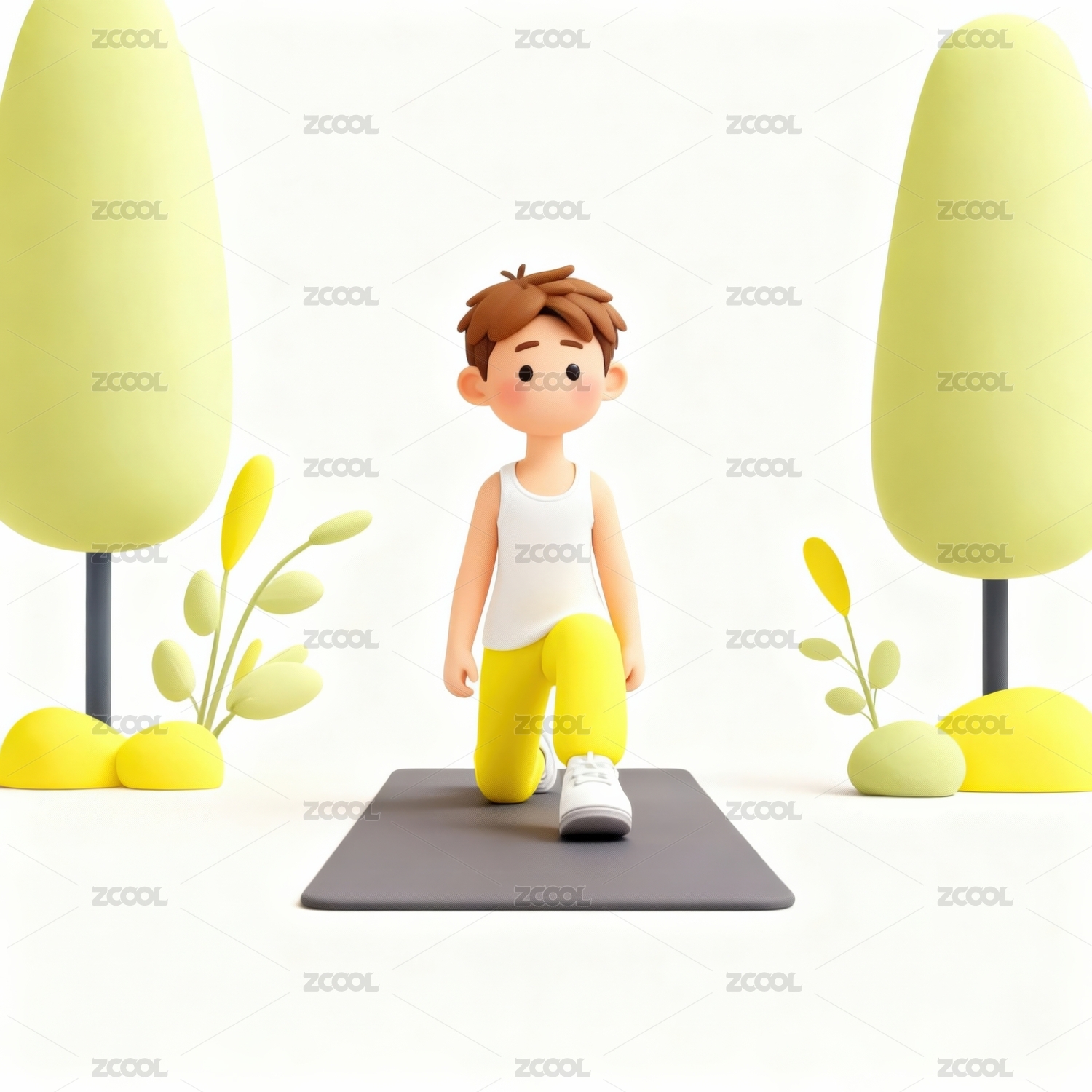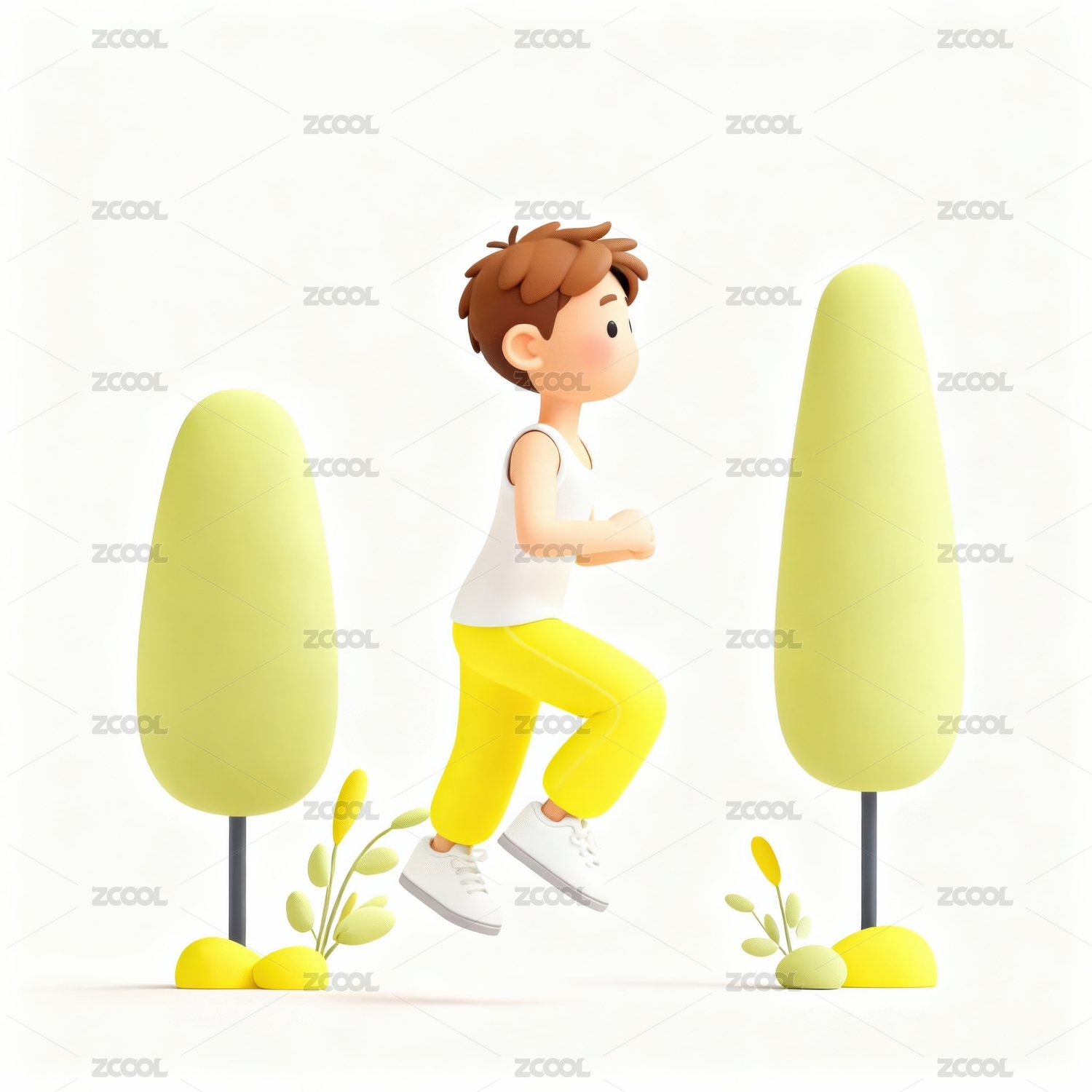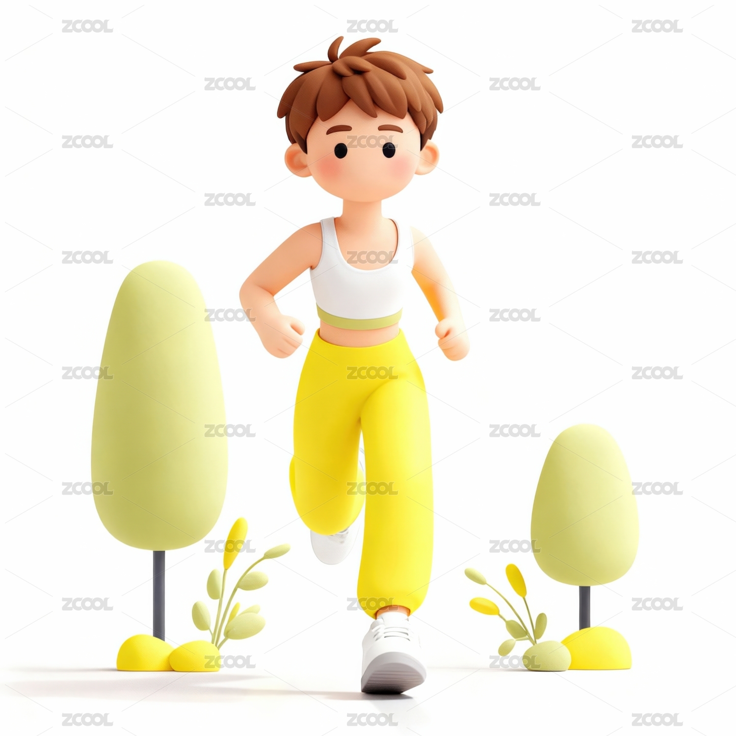 白色,黄色,背景,卡通,可爱,跑步,运动,休闲,绿色,衣服