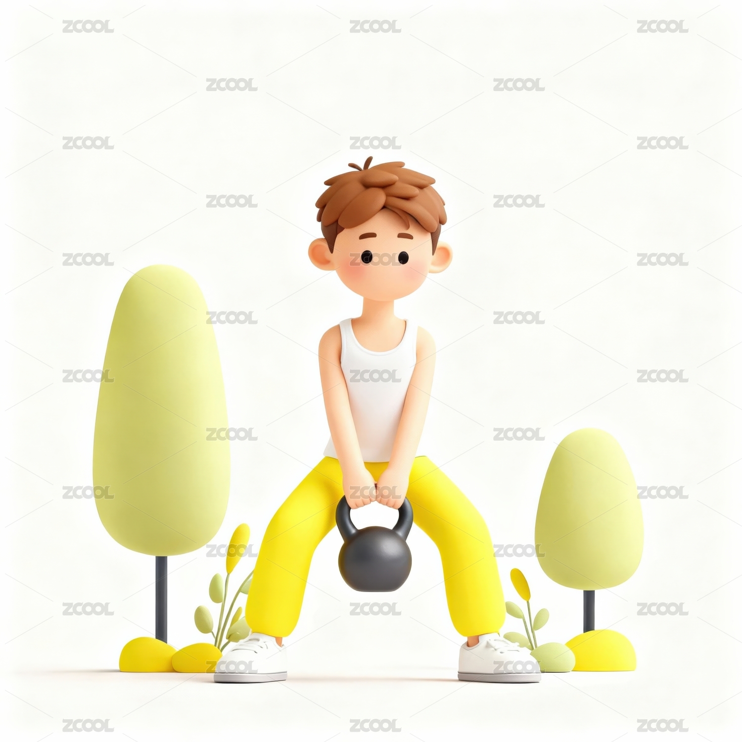 卡通人物举壶铃健身