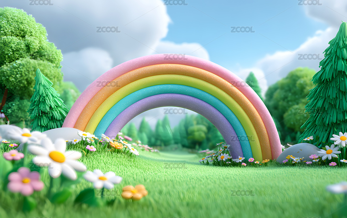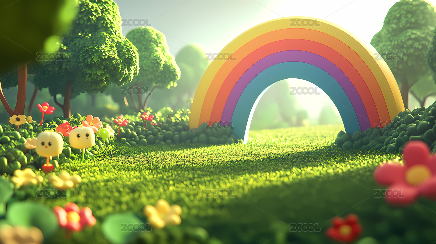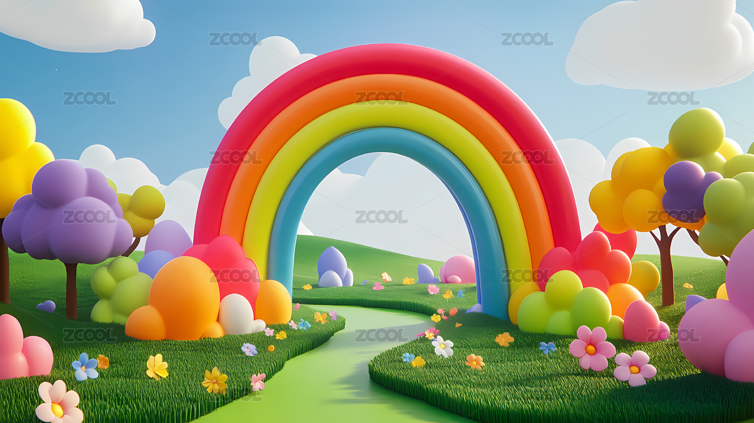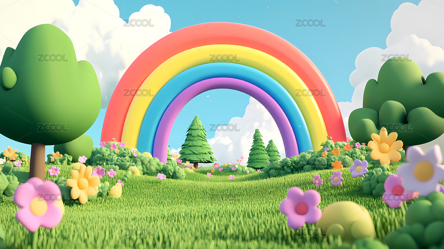 花卉,树木,风光,风景,自然,草原,鲜花,花朵,彩虹,海报