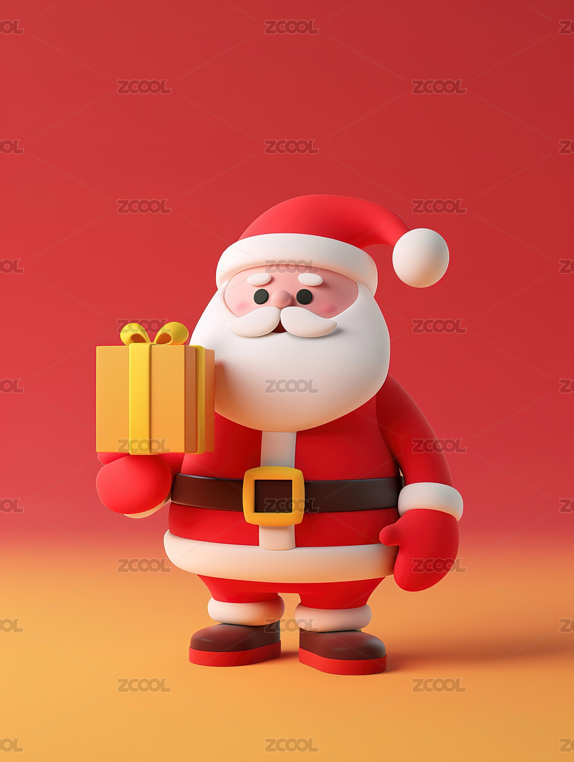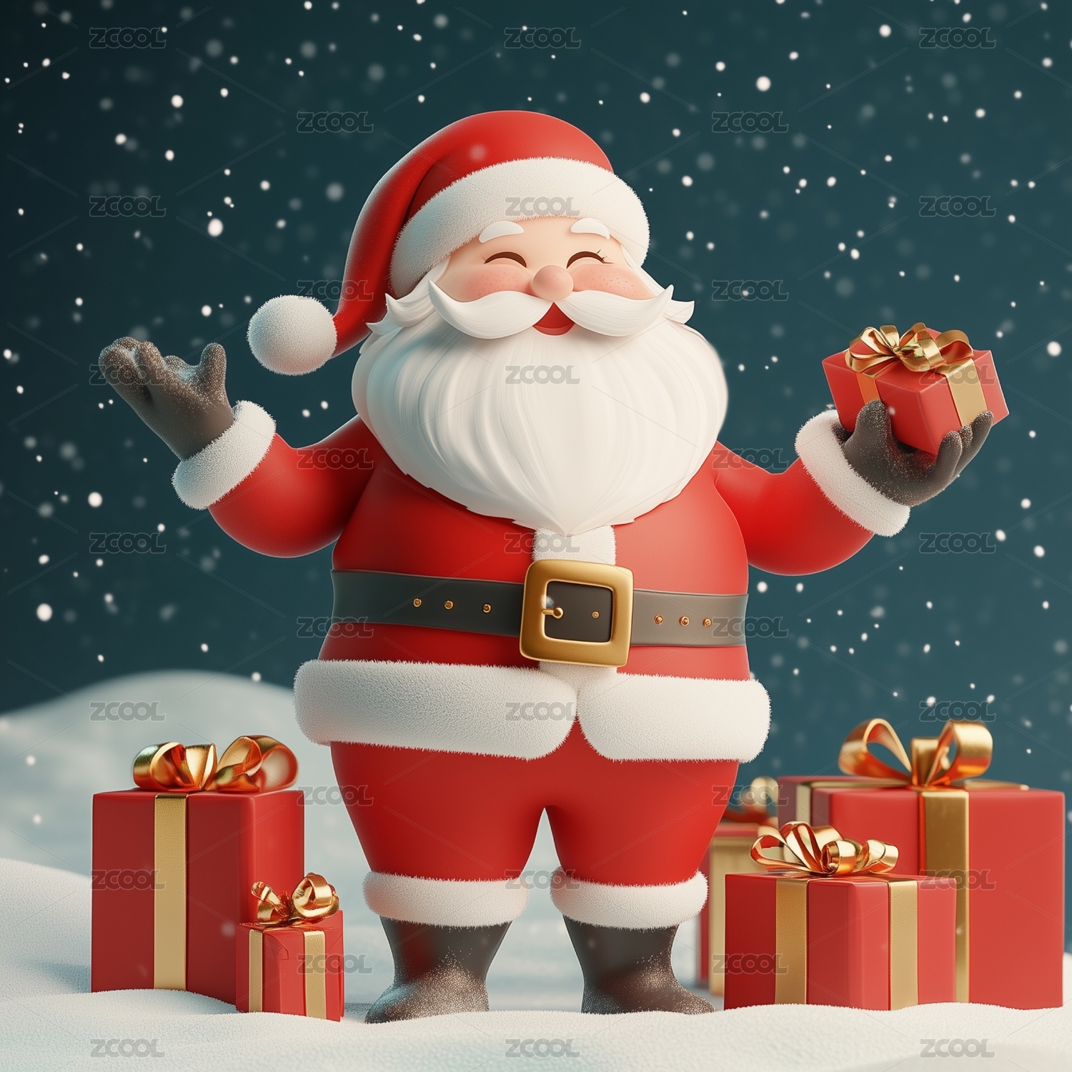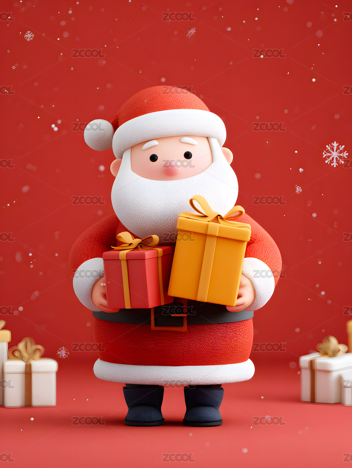 3D圣诞节圣诞老人抱着礼物盒子