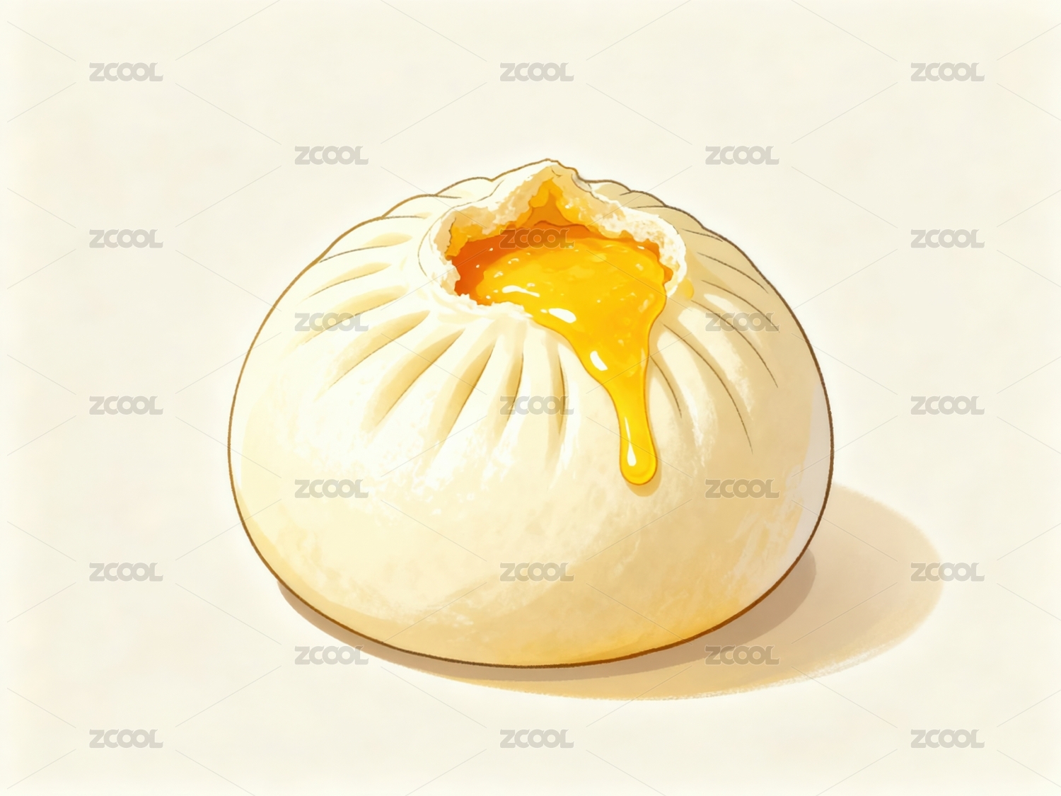 一盘热气腾腾的包子 中华传统小吃 手绘插画