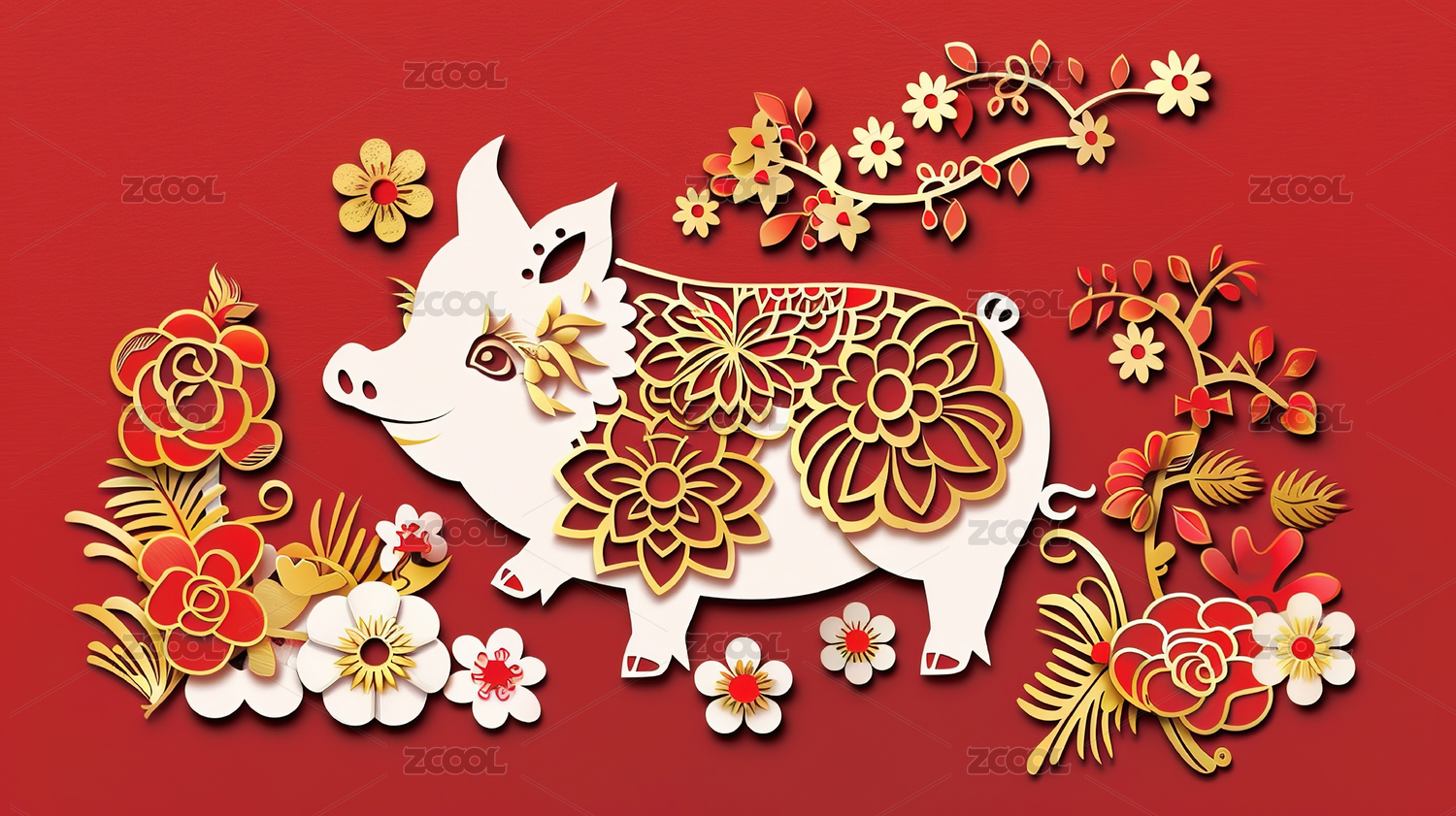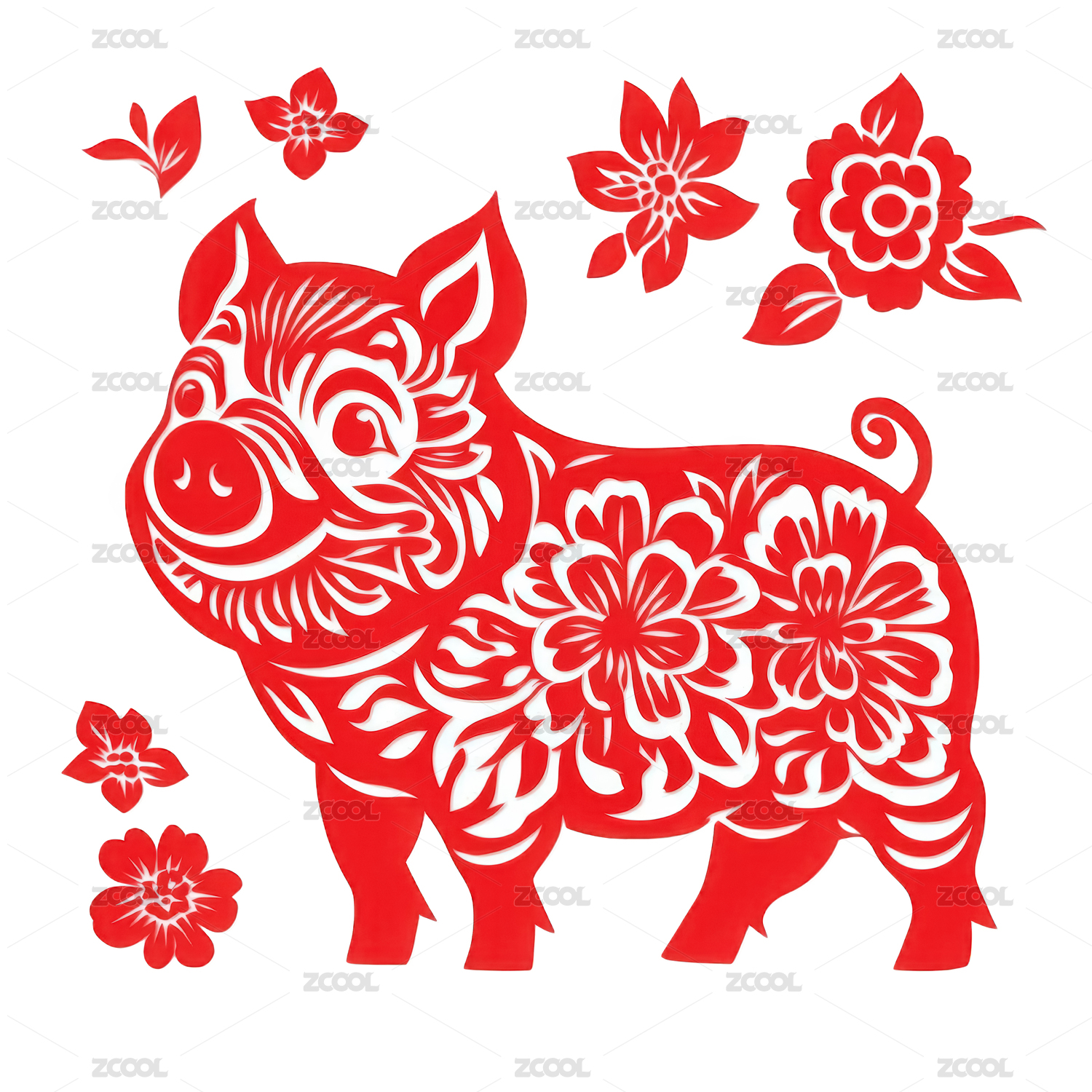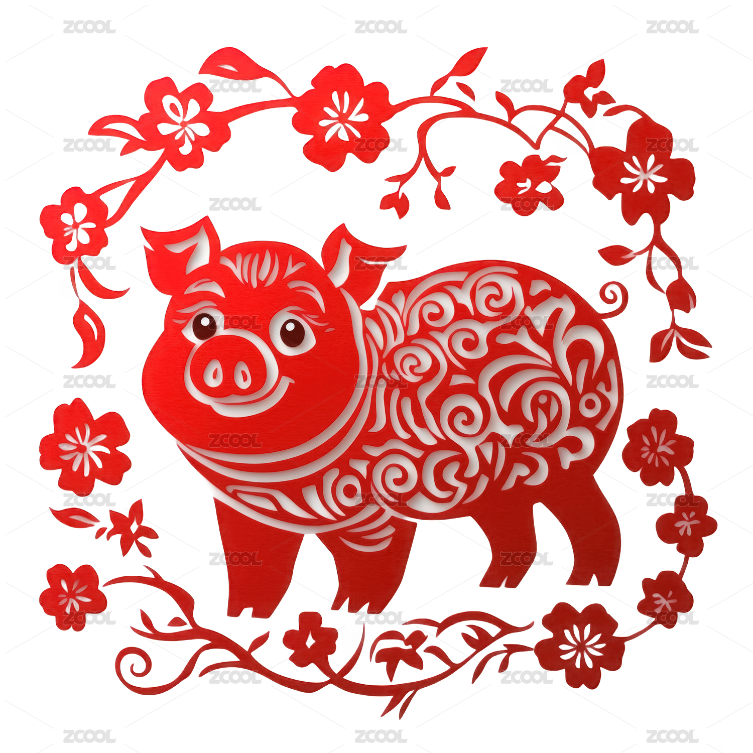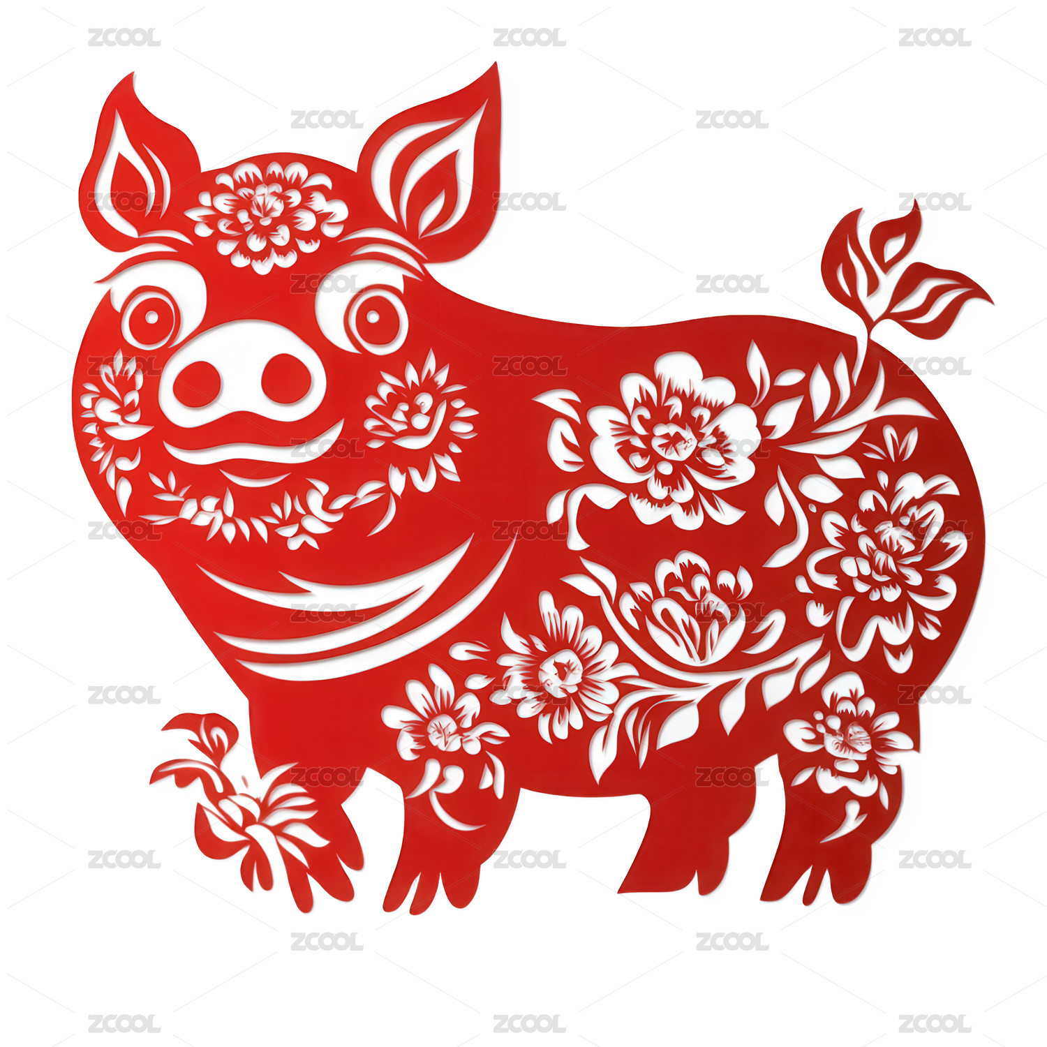 传统,装饰,图案,红色,对称,纹样,圆形,叶子,猪,剪纸