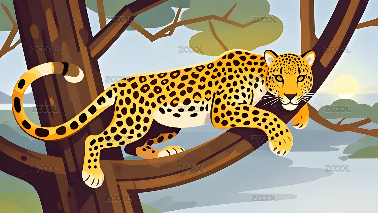 栖息在树上的猎豹艺术插画