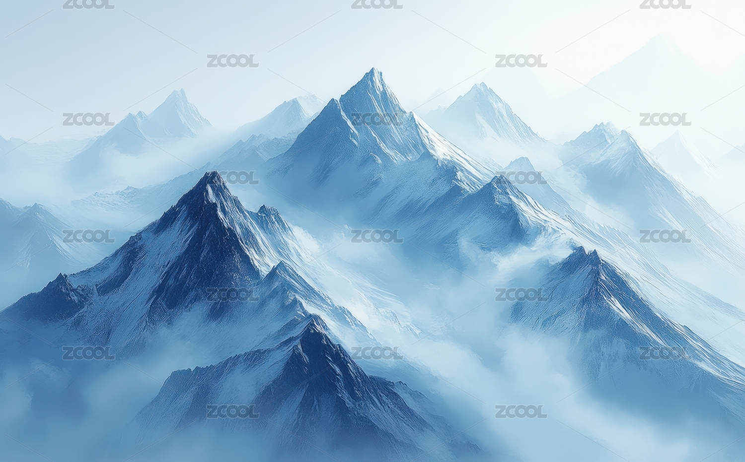 梦幻蓝色层叠山脉