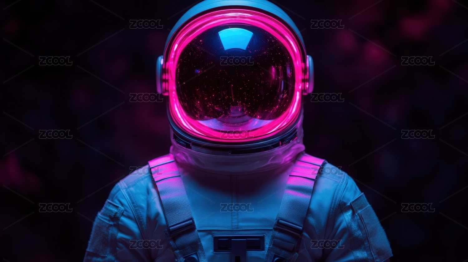 宇航员置身霓虹光环中