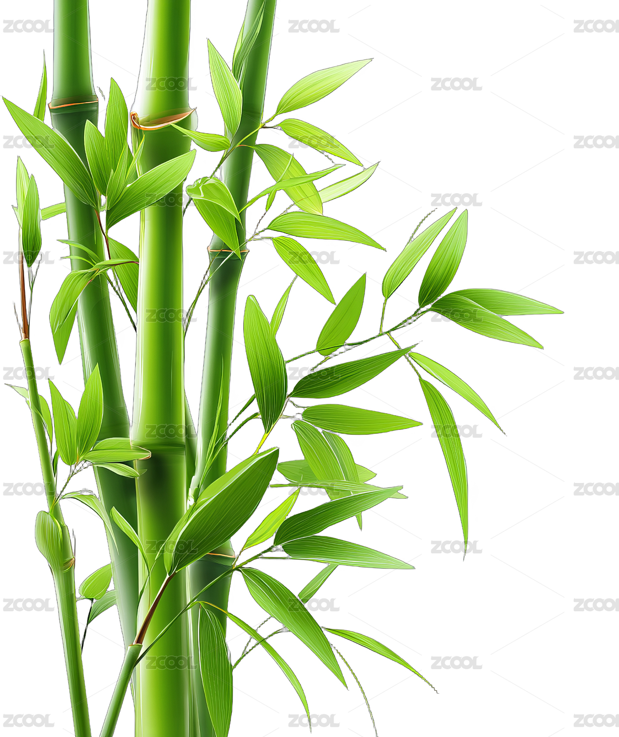三维渲染白色背景下的绿色竹子竹林