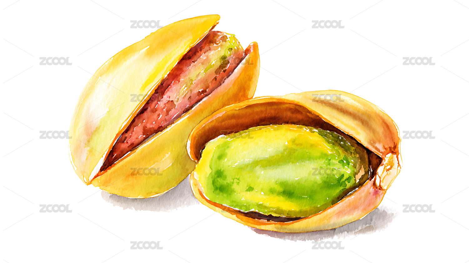 场景,艺术,物体,食物,特写,水彩,绘画,碧绿,坚果,开心果