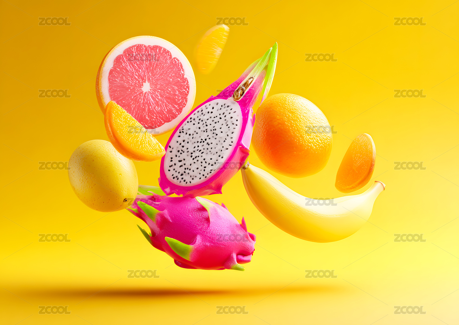 美食果汁新鲜水果切开汁水四溅色彩丰富诱人