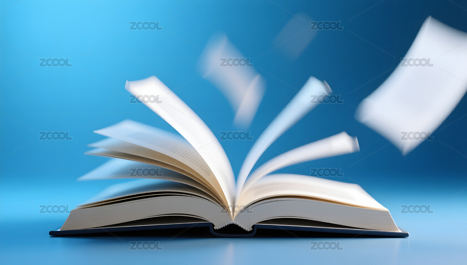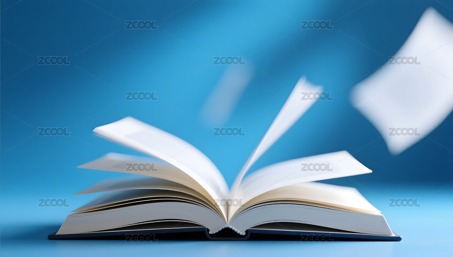 清新明亮纯色桌面上翻开的书3D立体插画