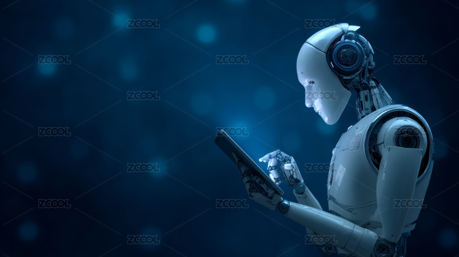 赛博朋克机器人使用笔记本电脑 科技感十足